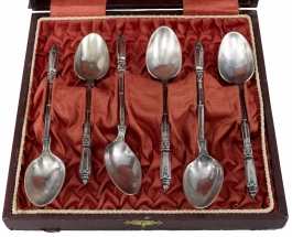 metal fasetat, decorat în relief, placate cu argint, marcate, înc.sec.XX, în casetă