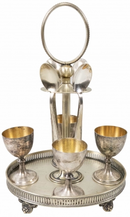 01.25 Zaharniță cu linguriță (model scafă), metal argintat, perioada interbelică
