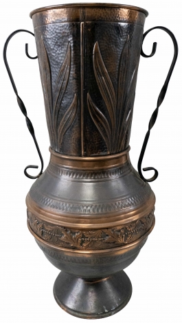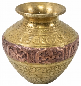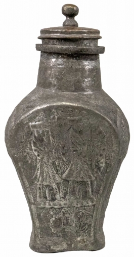01.26 Vas cu capac, decor în relief cu personaje, cupru cositorit, H 32cm, Persia, sec.XVIII