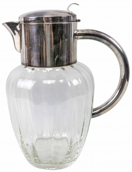 01.05 Carafă cu capac, sticlă montată în metal argintat, H 30cm, jum.sec.XX