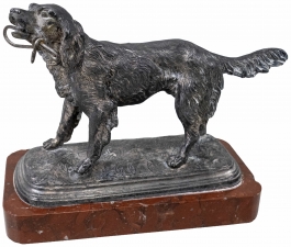01.08 Setter, suport pentru ceas de buzunar, metal soclu marmură, H 13.5cm, perioada interbelică