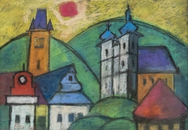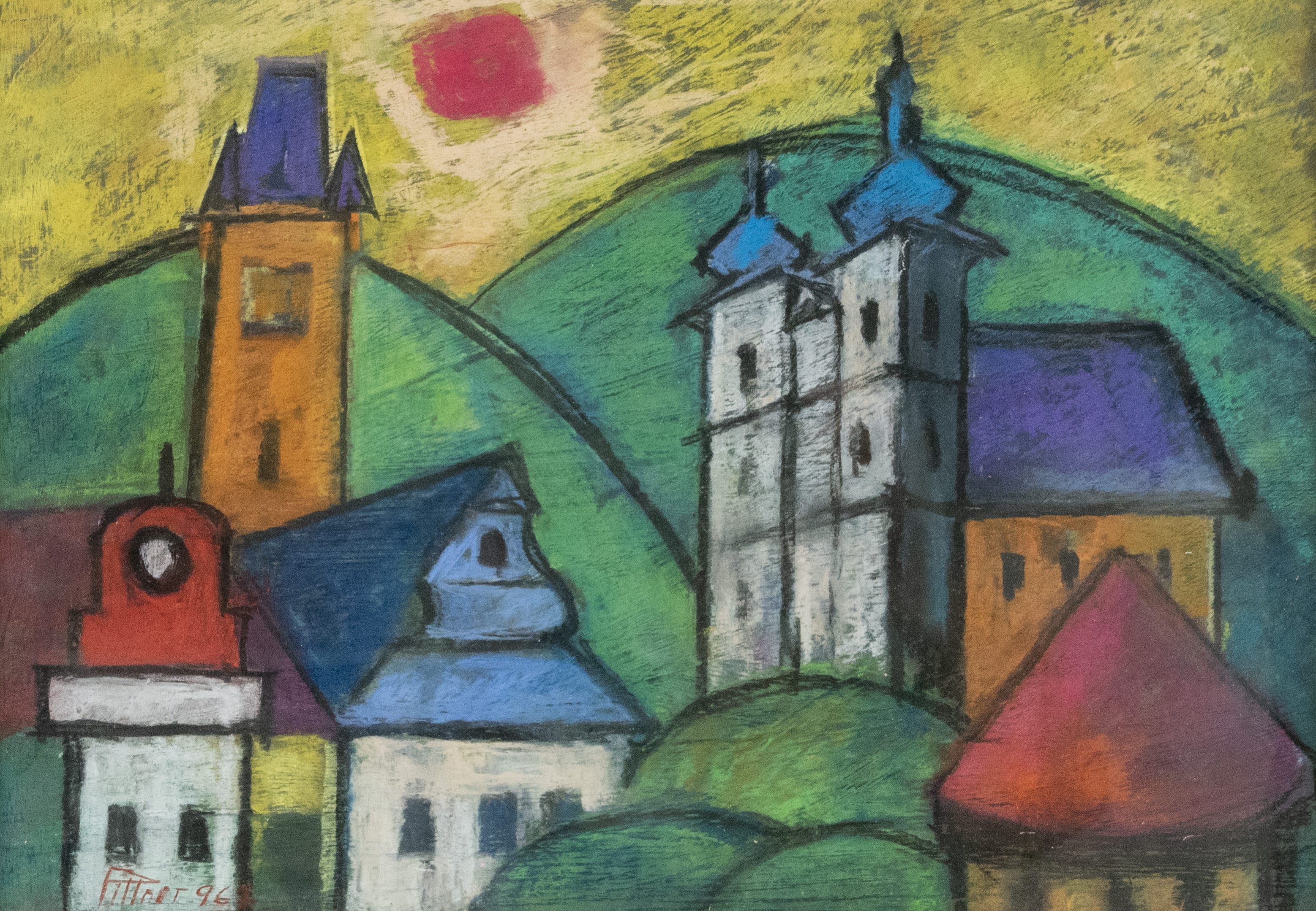 07.09 Oliver Pittner (1911-1971) - "Peisaj transilvănean", pastel, 34.5x49cm, semnat stânga jos cu roșu, datat (1)967