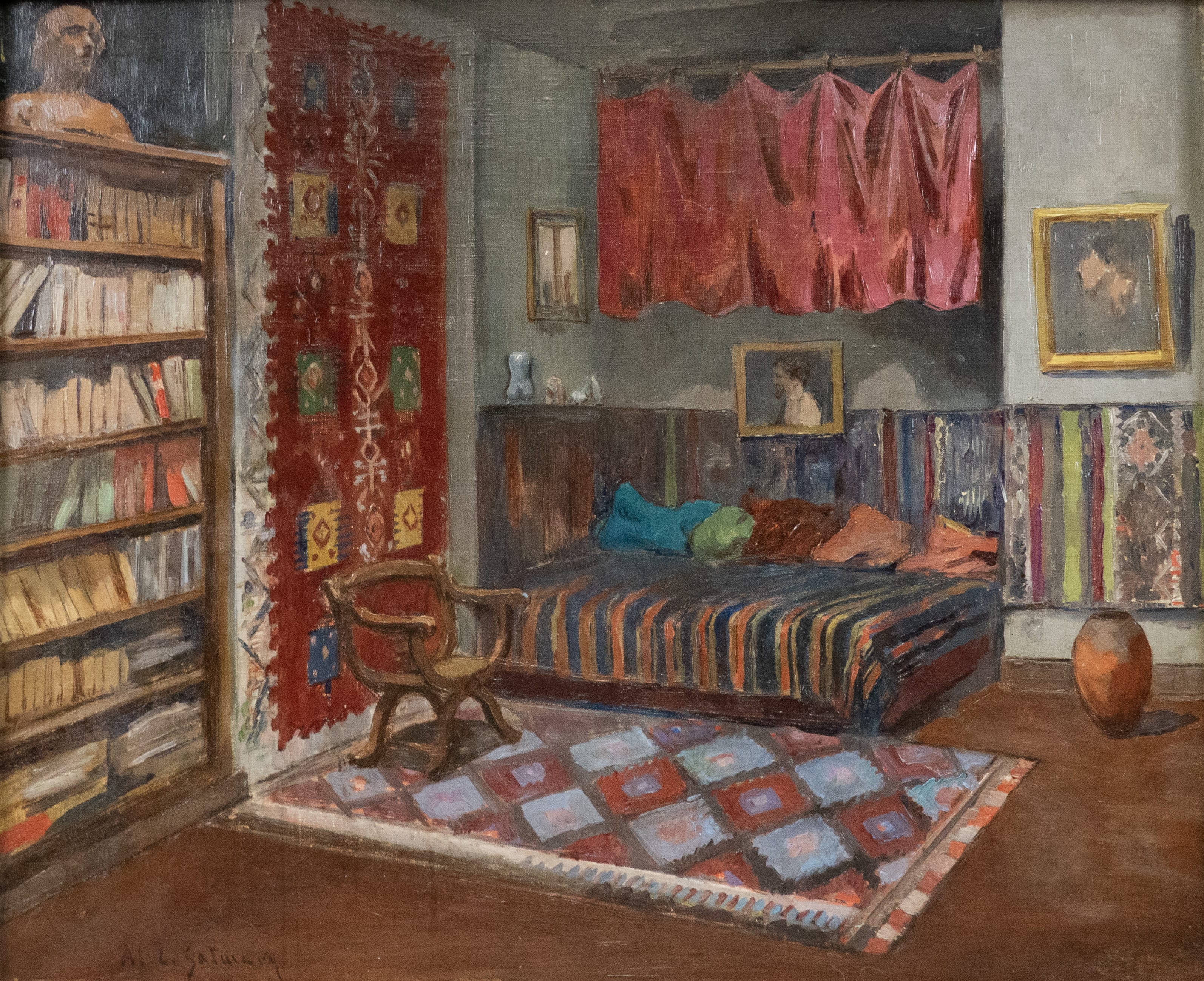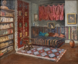 07.38 Alexandru Satmari (1971-1933) - "Interior cu autoportret", ulei pe pânză, 60x73cm, semnat stânga jos cu brun