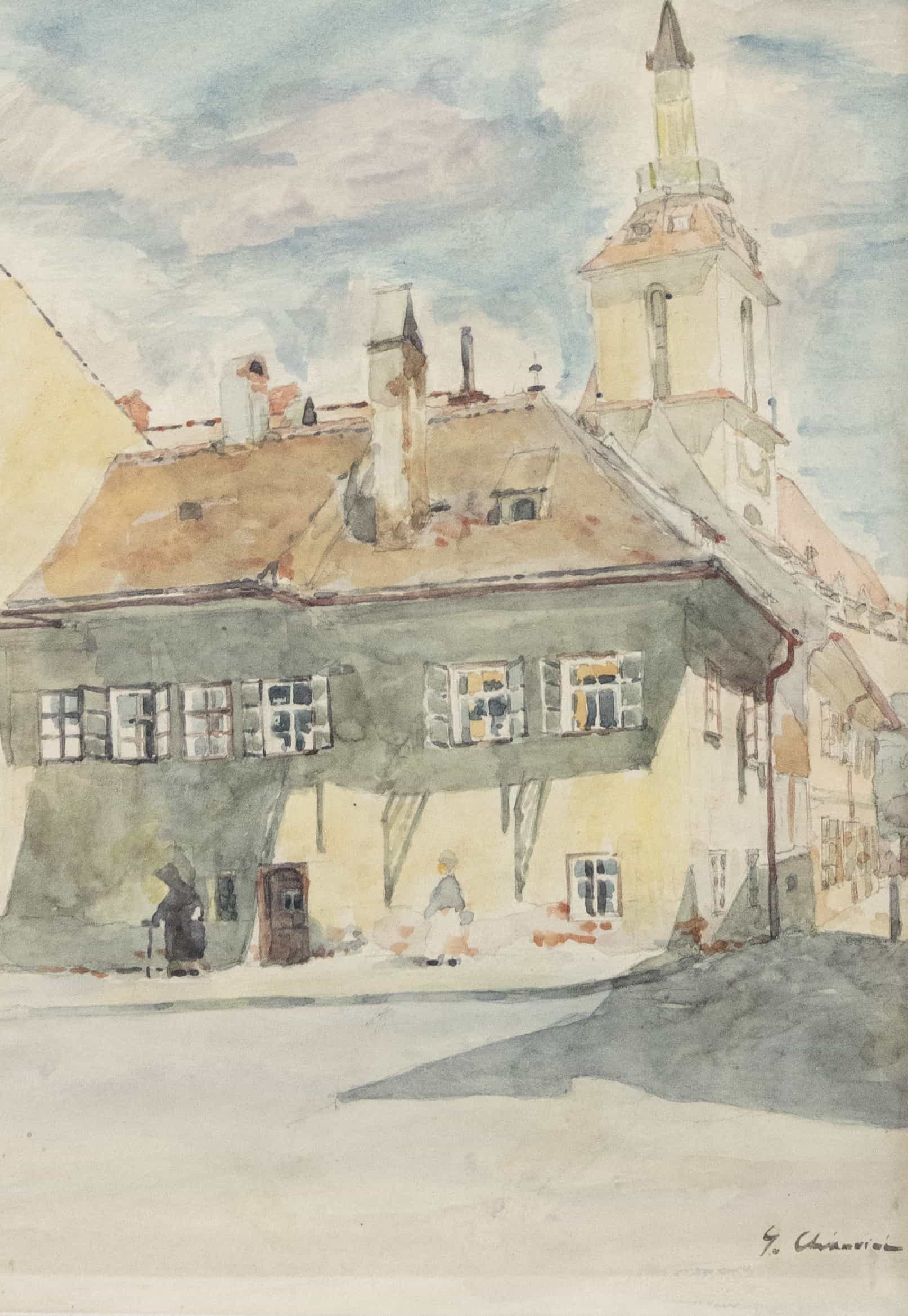 07.03 George Chirovici (1883-1968) - "Piață Ardeal", acuarelă, 34.5x25cm, semnat dreapta jos cu brun
