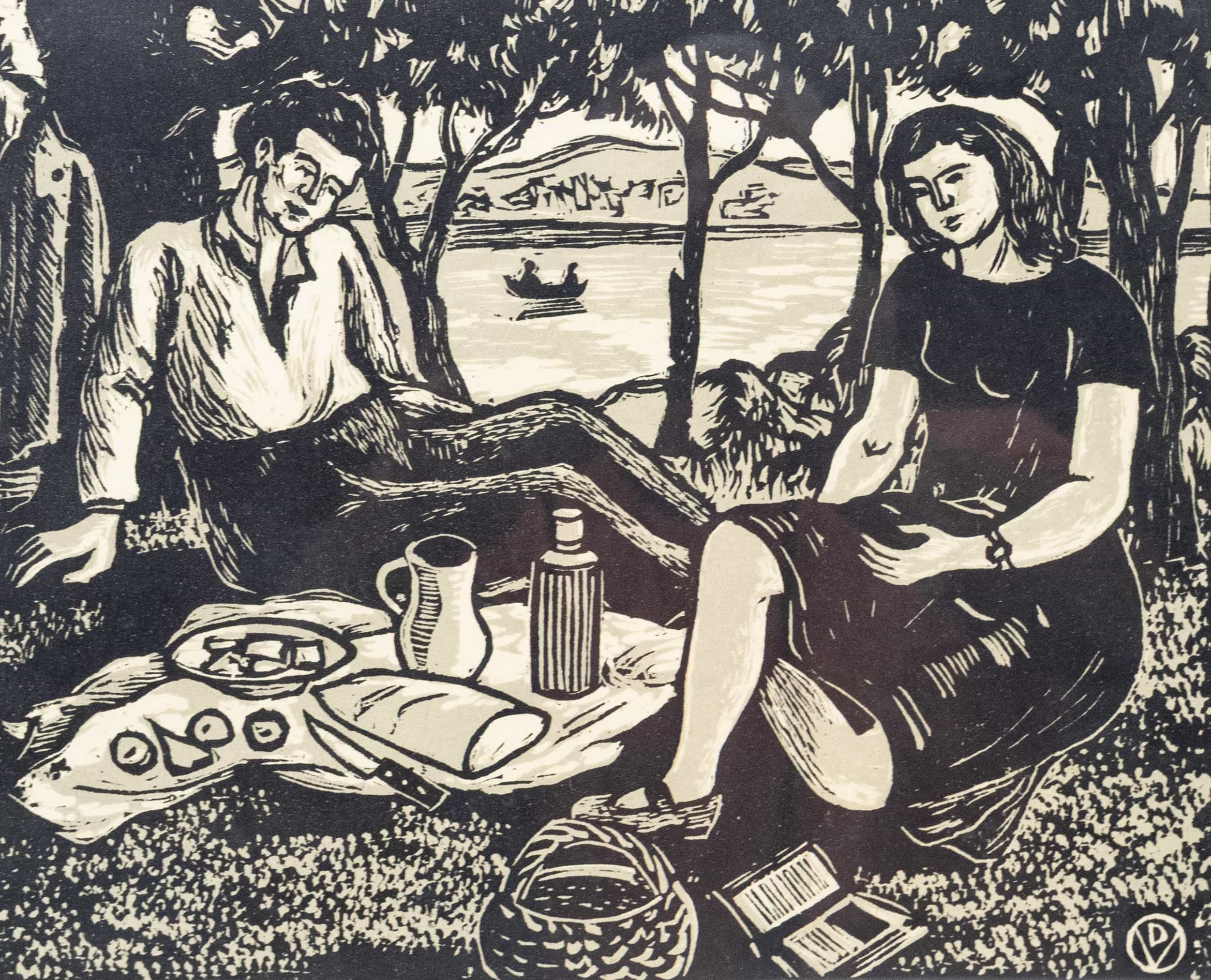 07.07 Vasile Dobrian (1912-1999) - "Picnic", litografie, 21.5x26.5cm, semnat dreapta jos în lucrare