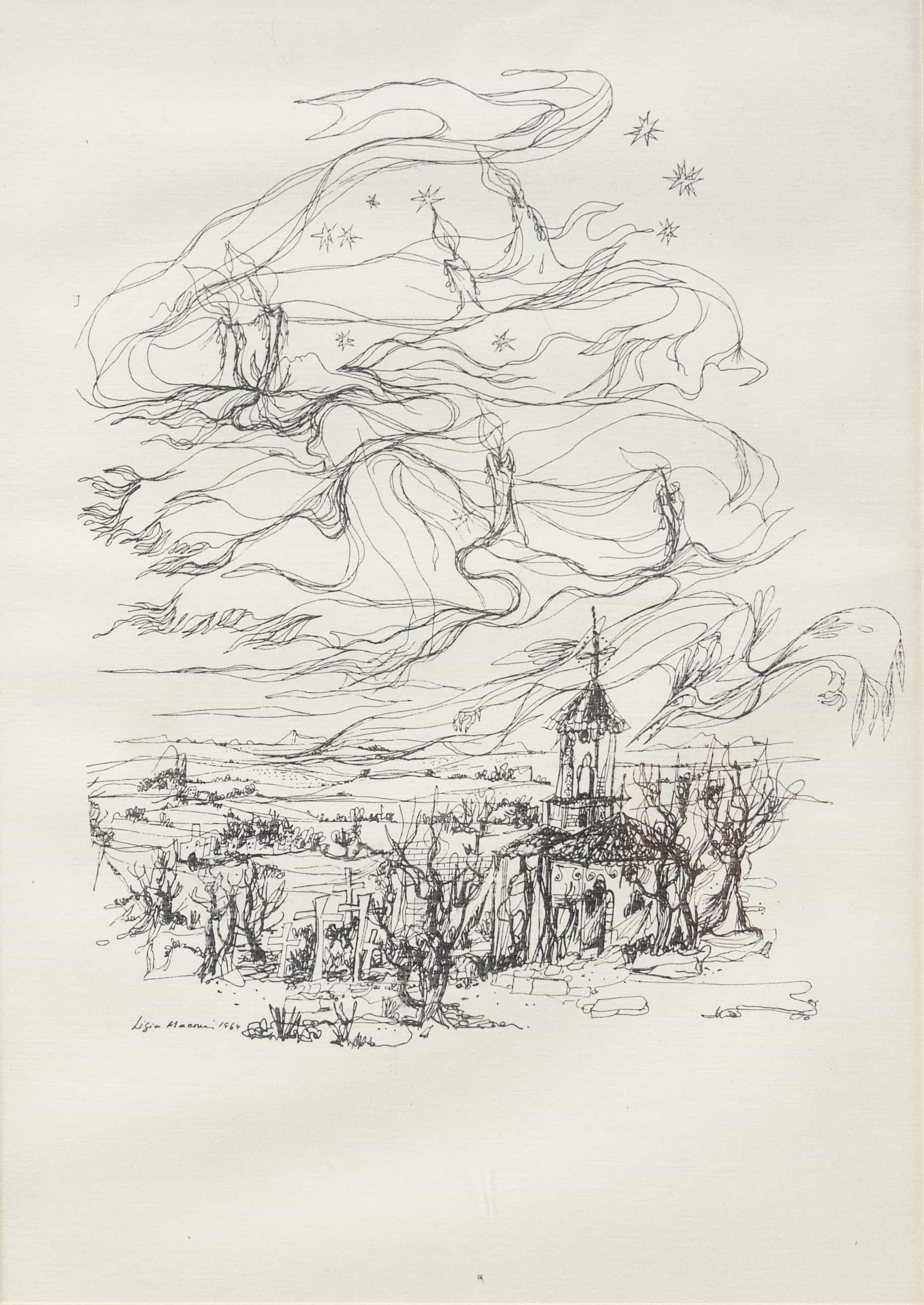 07.08 Ligia Macovei (1916-1998) - "Ilustrații la volumul Poezii de Mihai Eminescu", tuș, 24x17cm, semnat stânga jos cu tuș, datat 1960