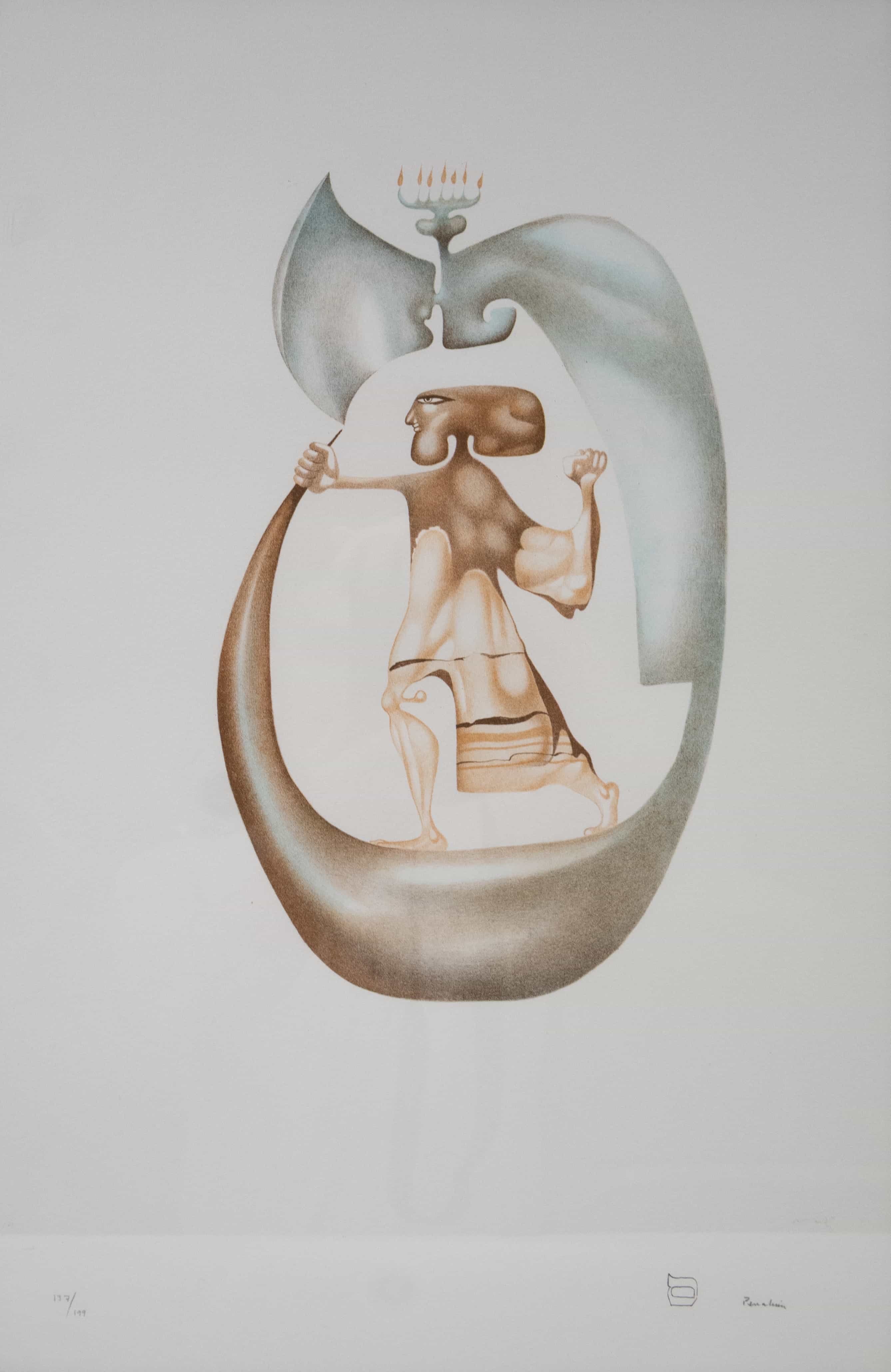 07.09 Jules Perahim (1914-2008) - "Compoziție cu menoră", cromolitografie 137/199, 55x35cm, semnat dreapta jos cu creionul