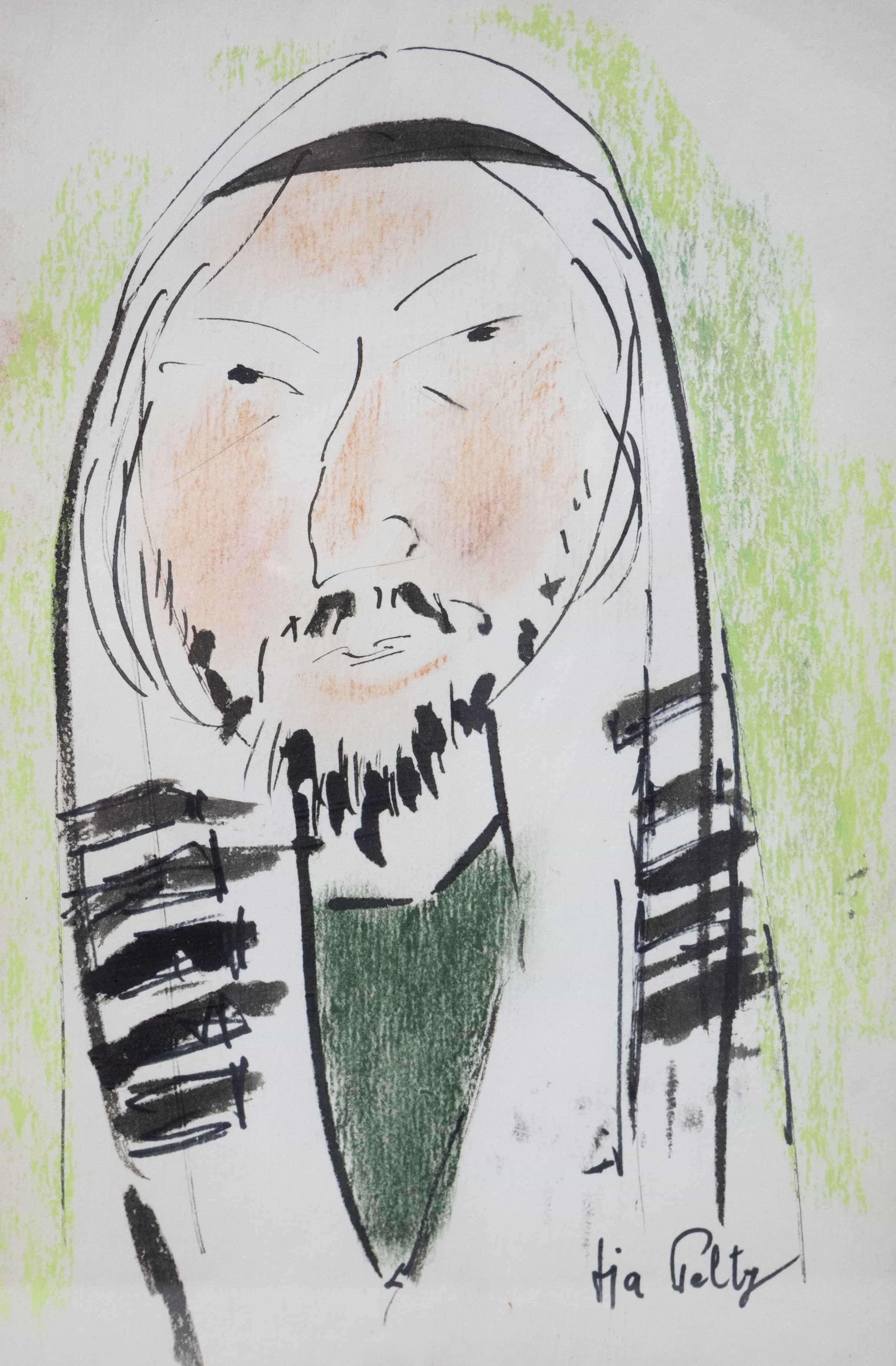 07.11 Tia Peltz (1923-1999) - "Rabin", tehnică mixtă, 27x17cm, semnat dreapta jos cu tuș