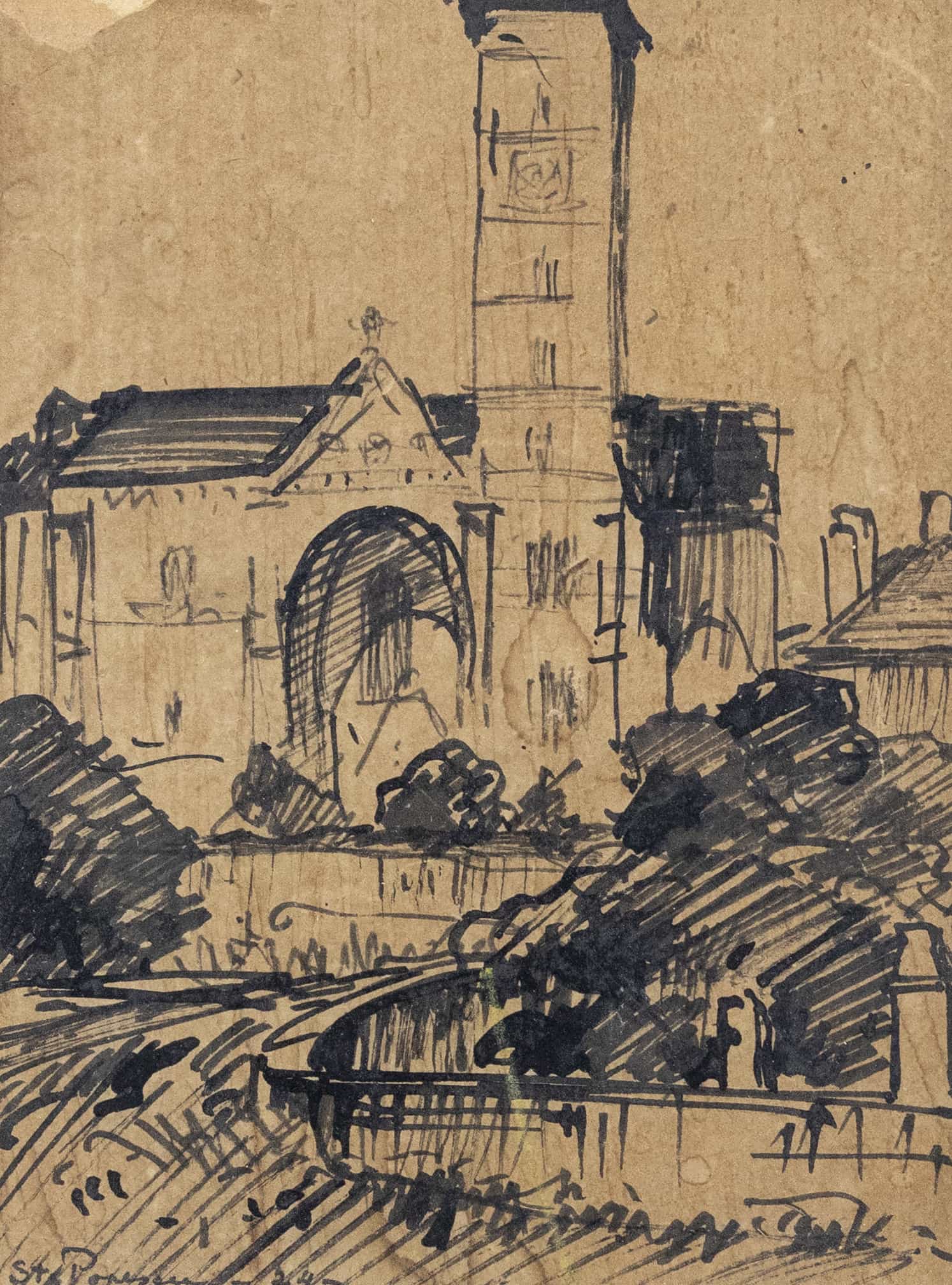 07.12 Ștefan Popescu (1872-1948) - "Catedrala", tuș, 18.5x13.5cm, semnat stânga jos cu tuș, datat (19)24