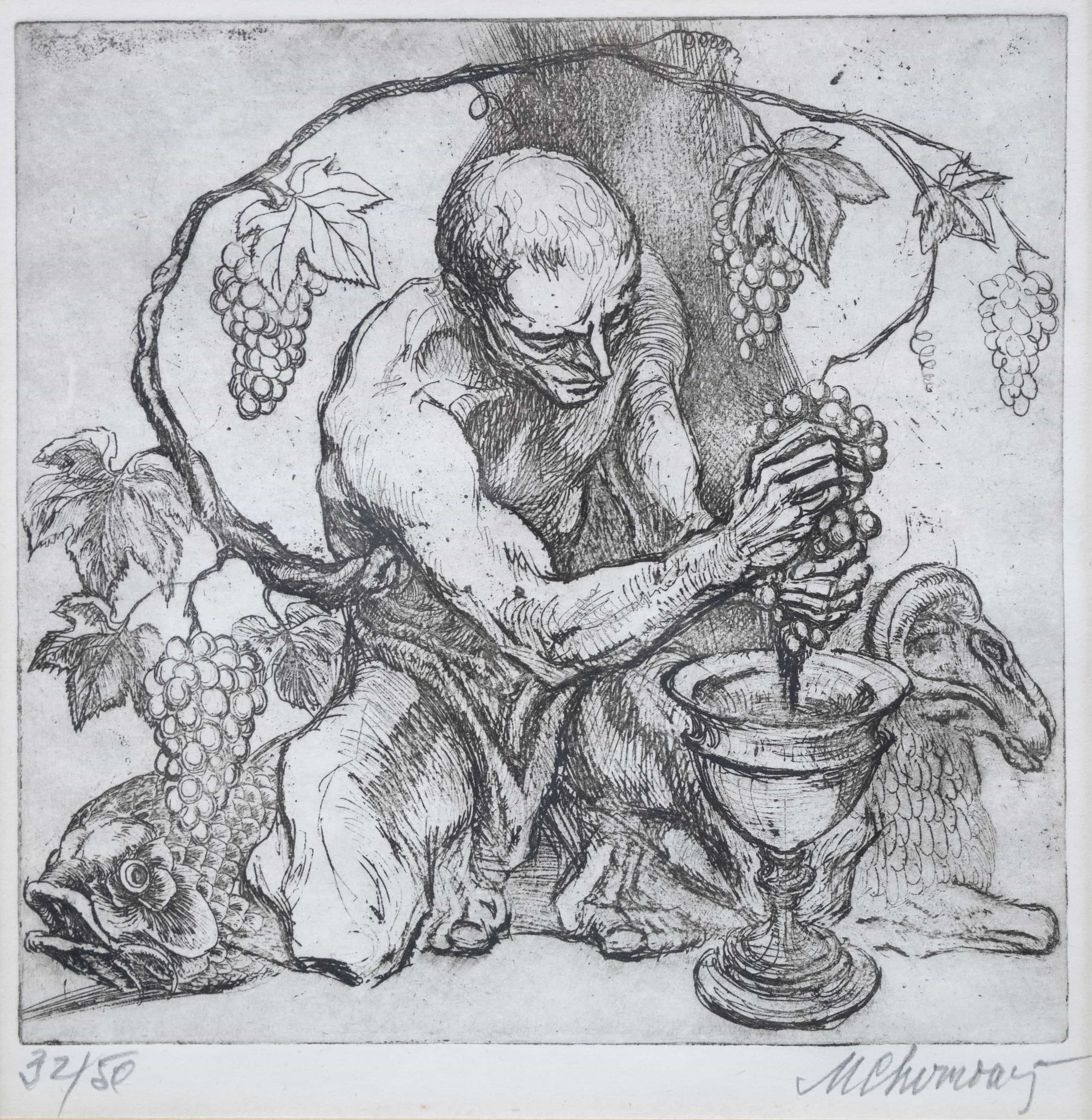 07.14 Marcel Chirnoagă (1930-2008) - "Vinul inimii", gravură ex.32/50, 21x20cm, semnat dreapta jos cu creionul