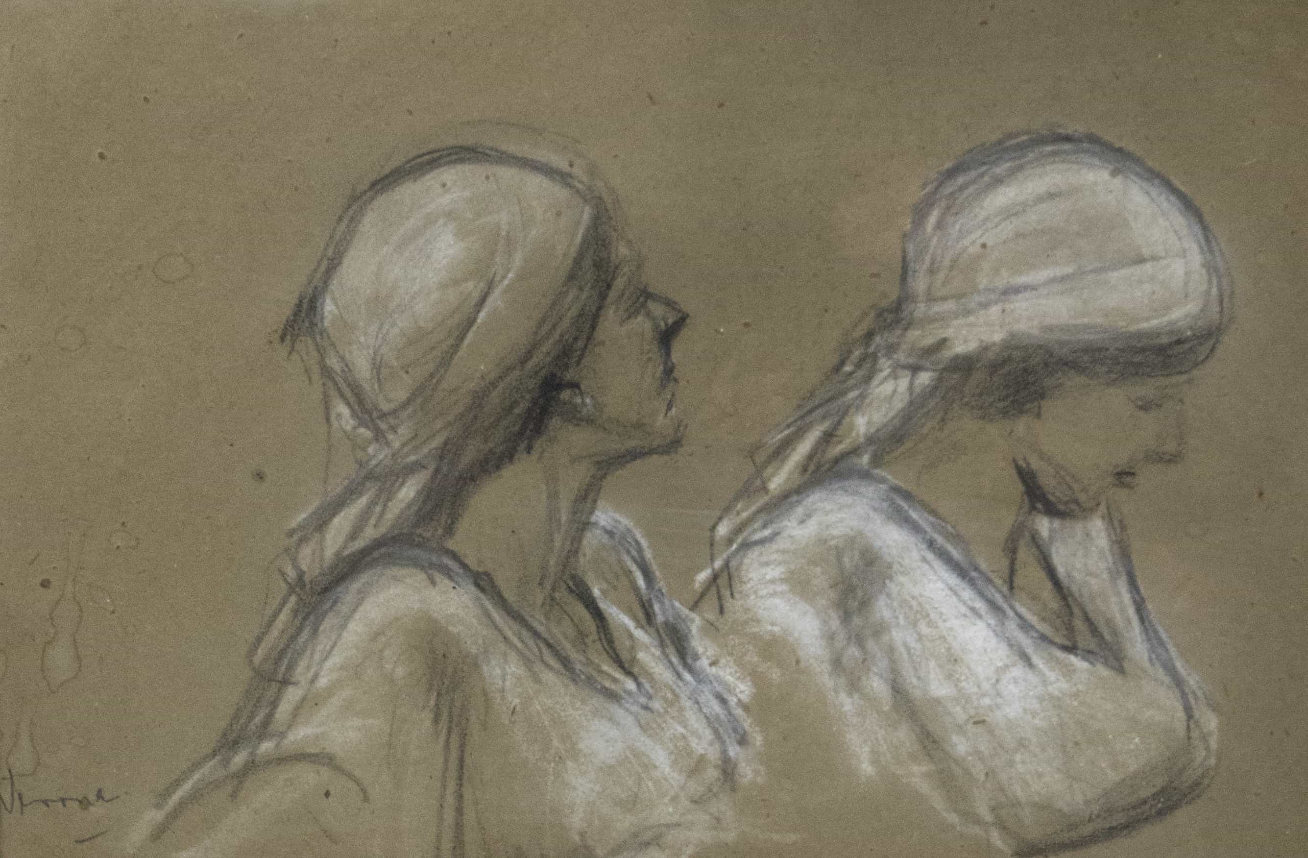 07.15 Arthur Verona (1867-1946) - "Dublu portret", cărbune și cretă, 28x43cm, semnat stânga jos cu negru