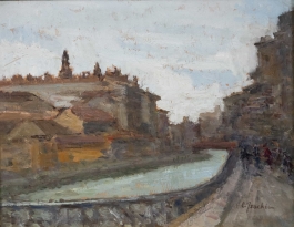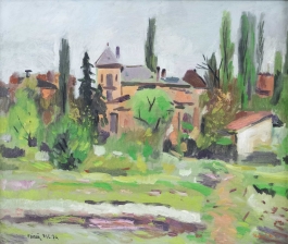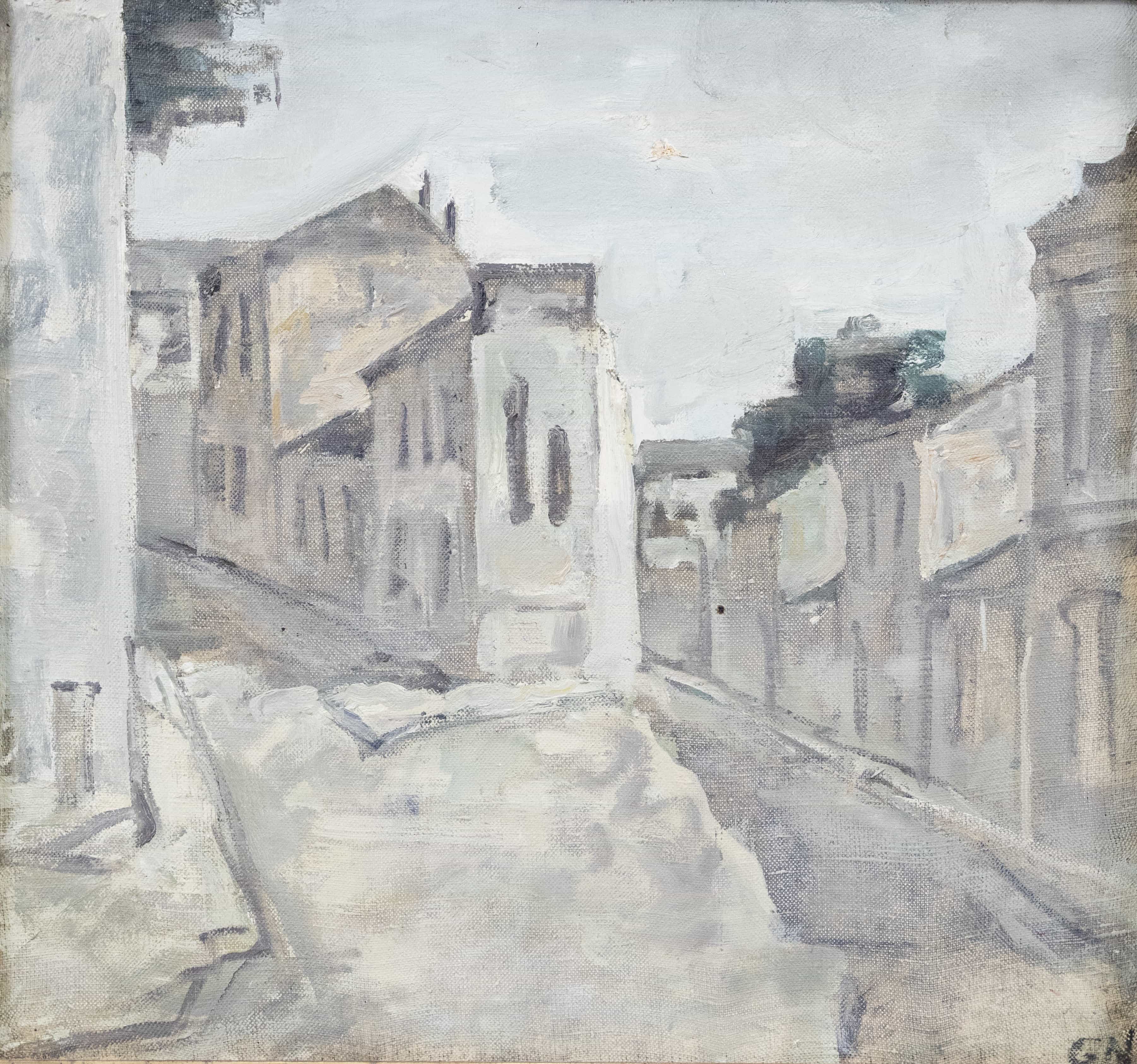 07.21 Nicolai Georgescu (1946-1995) - "Peisaj din București", ulei pe pânză, 50.5x54.5cm, semnat dreapta jos cu inițiale