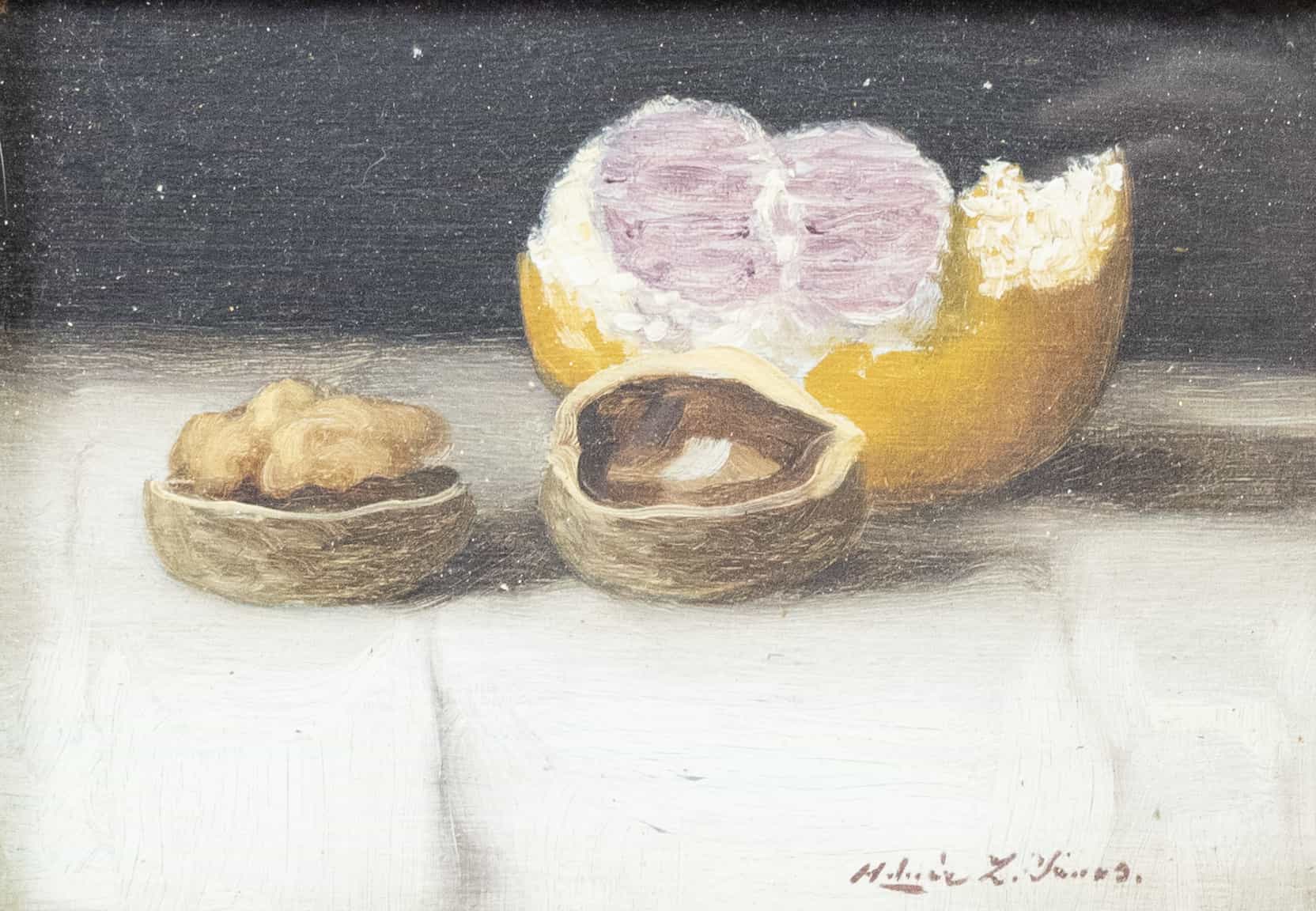 07.25 Molnar Janos (1880-1960) - "Natură statică", ulei pe carton, 12x17cm, semnat dreapta jos cu brun