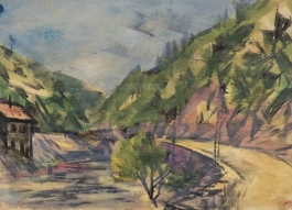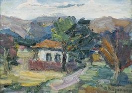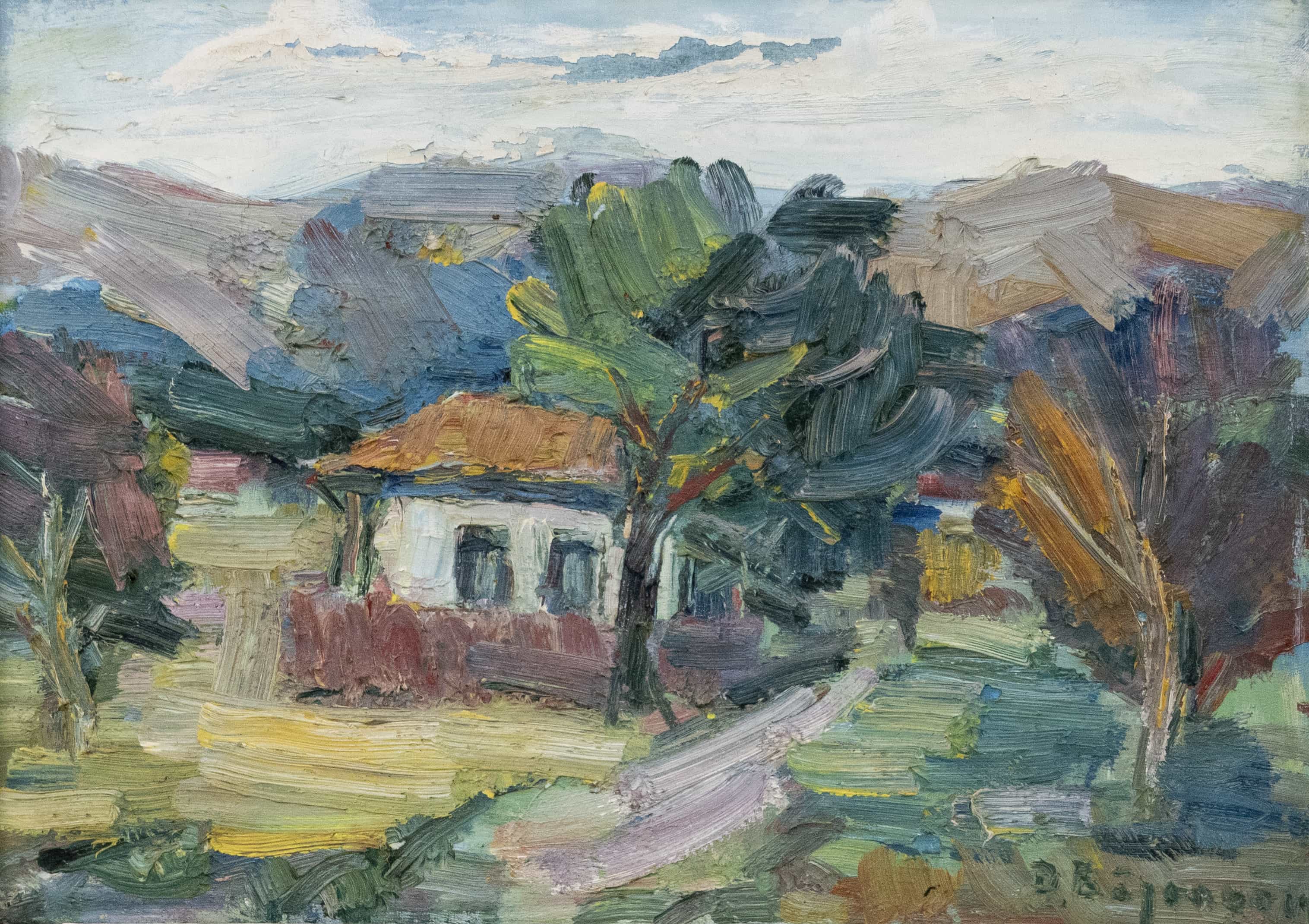07.29 Dan Băjenaru (1900-1988) - "Casă la poalele dealului", ulei pe pânză, 34x48cm, semnat dreapta jos cu verde
