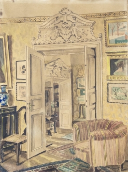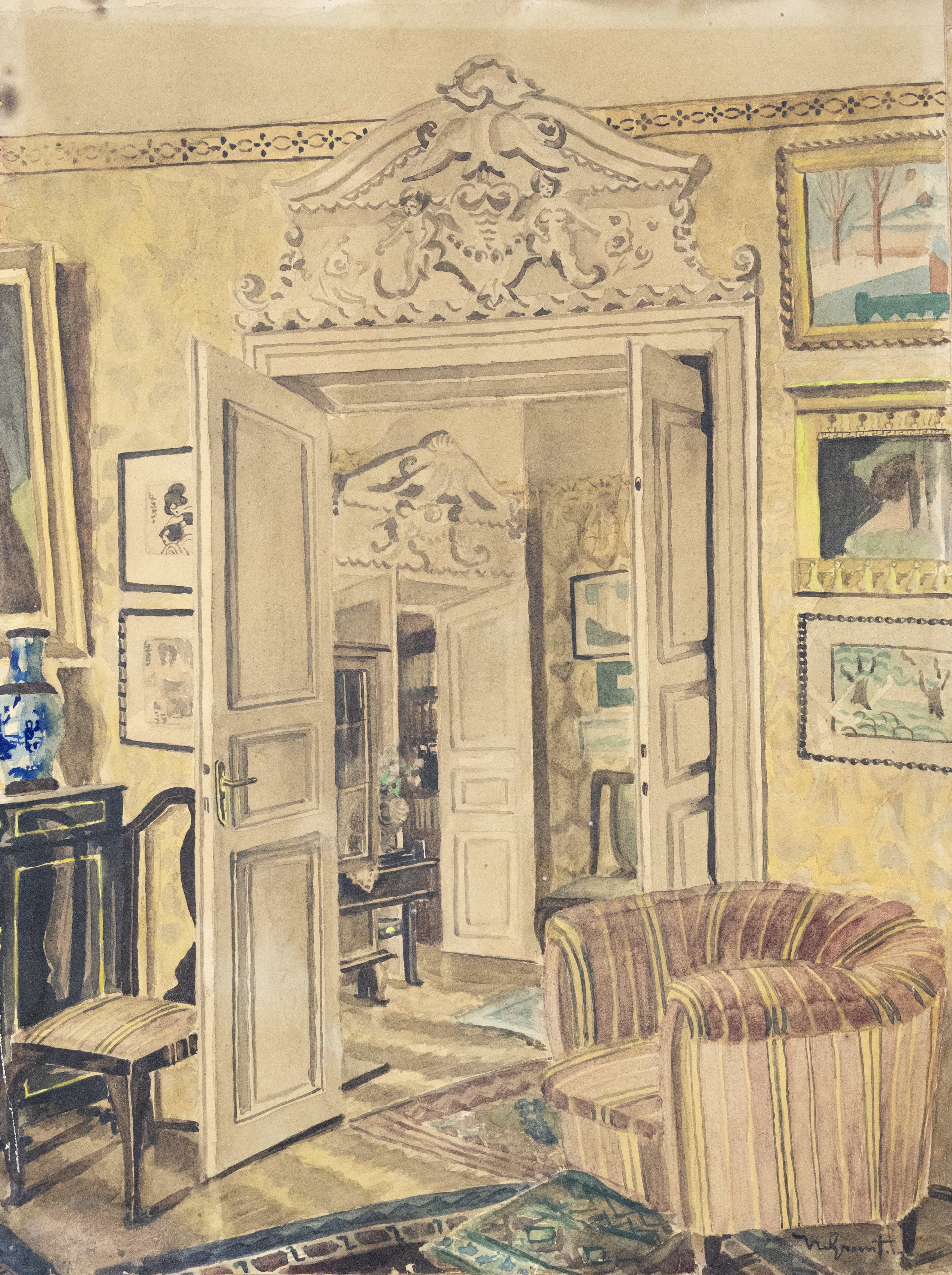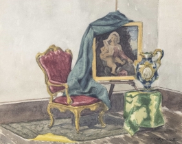 07.31 Nicolae Grant (1868-1950) - "Interior boeresc", acuarelă, 44x33cm, semnat dreapta jos cu negru