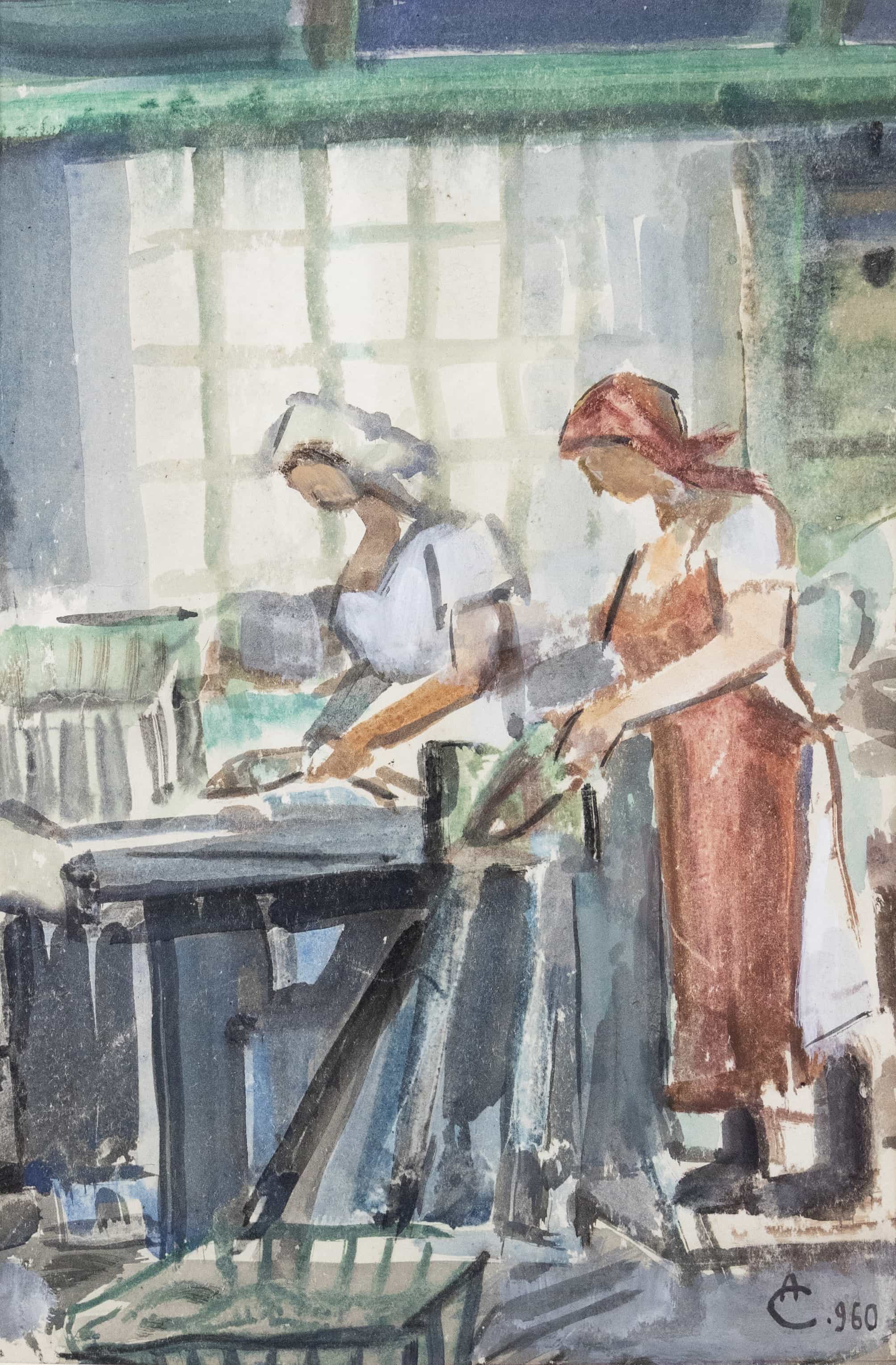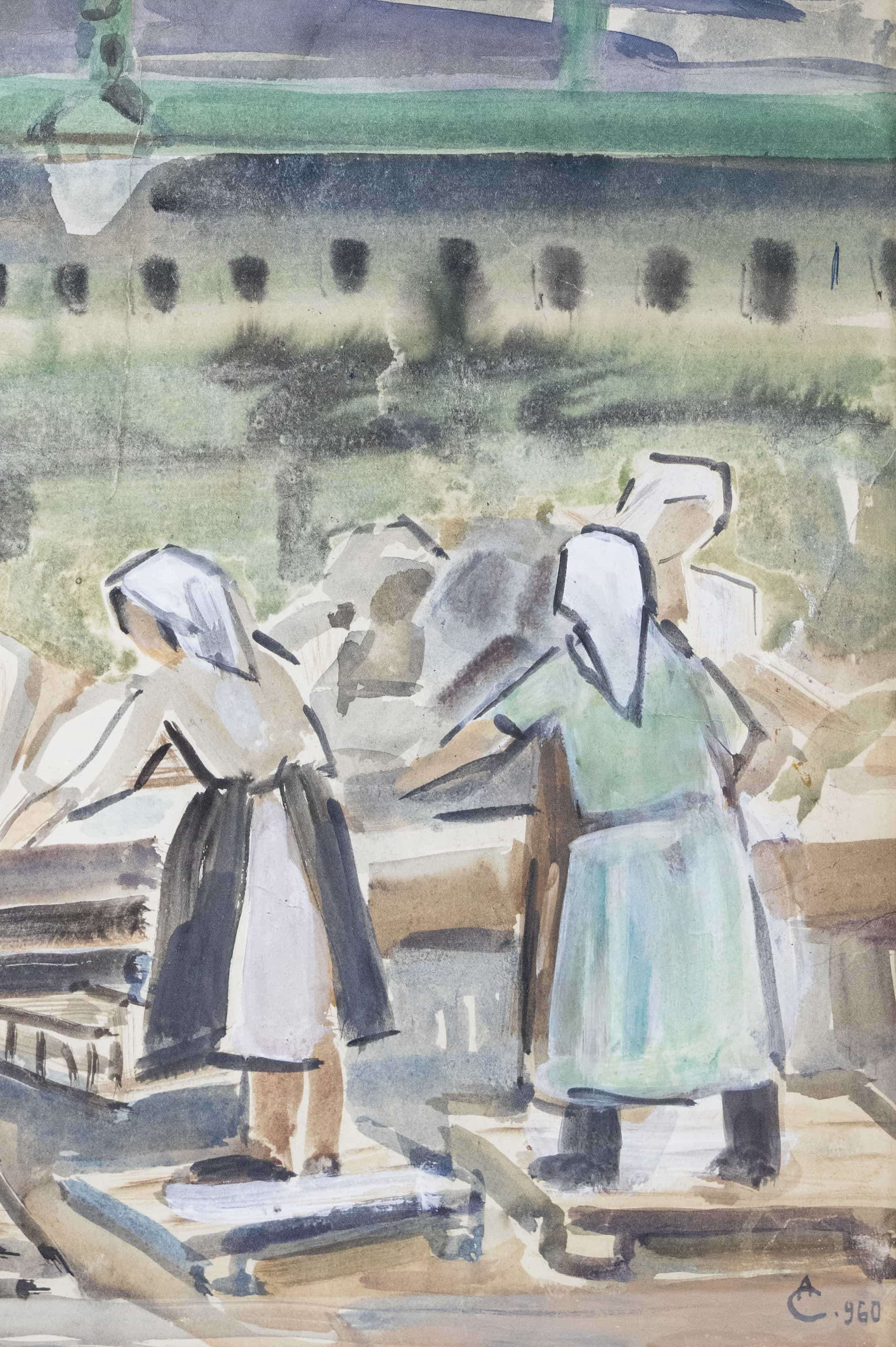 07.33 Alexandru Ciucurencu (1903-1977) - "La cherhana", acuarelă, 47x32cm, semnat dreapta jos în monogramă, datat (1)960