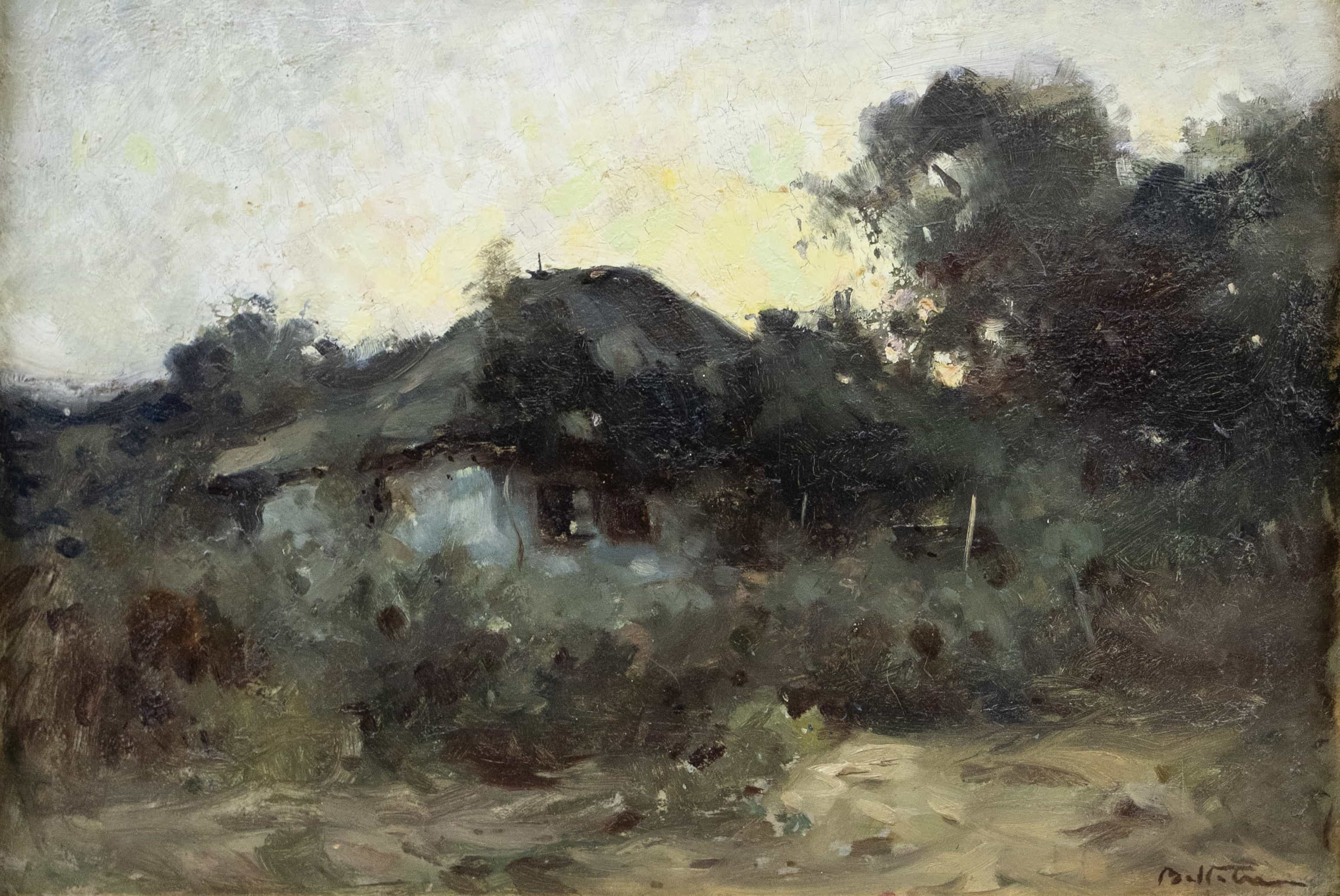 07.43 Adam Bălțatu (1899-1979) - "Colibă", ulei pe carton, 64.5x49cm, semnat dreapta jos cu brun