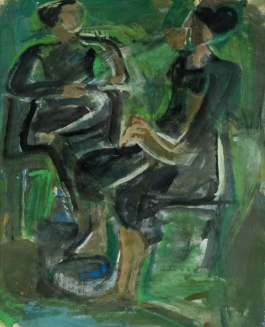 07.06 Eva Cerbu (1924-2008) - "Conversație", guașă, 32x26cm, semnat dreapta jos cu negru