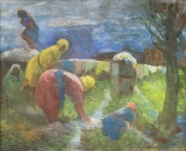 07.13 Nicolae Gropeanu (1864-1936) - "Spălătorese", pastel, 48x59cm, semnat dreapta jos cu negru