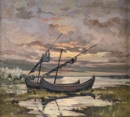 07.15 Ionel Iacobescu (1903-1968) - "În Deltă", ulei pe pânză, 71x80cm, semnat stânga jos cu roșu