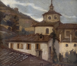 07.18 Marius Ledda (1880-1969) - "Abație", ulei pe carton, 36x40cm, semnat stânga jos cu roșu