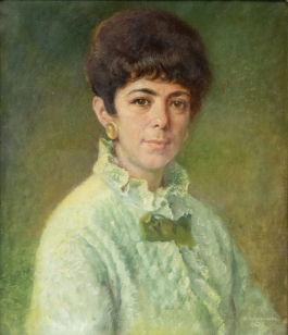 07.23 Gheorghe Șaru (1920-2003) - "Portret de tânără", ulei pe pânză, 65.5x54cm, semnat dreapta jos cu negru, datat 1963