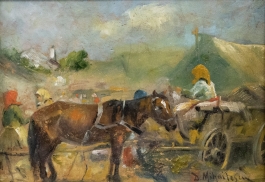 07.24 Dimitrie Mihăilescu (1872-1921) - "La târg", ulei pe lemn, 17.5x24.5cm, semnat dreapta jos cu negru