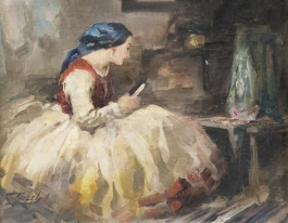 07.29 Peczely Antal (1891-1944) - "La oglindă", ulei pe pânză, 41x51cm, semnat stânga jos cu negru