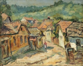07.31 Ștefan Mironescu (1904-1985) - "Stradă însorită în Schei", ulei pe carton, 50x63cm, semnat stânga jos în pastă, datat 1959
