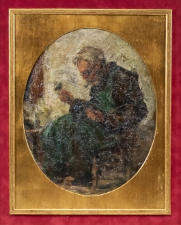 07.37 Octav Băncilă (1872-1944) - "Cismarul", ulei pe carton, oval 40x32cm, semnat stânga jos cu gri