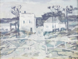 07.24 Constantin Marcu Nircă (1938-2005) - "Periferie", ulei pe pânză, 50x60cm, semnat stânga jos cu negru și dreapta jos cu brun, datat (19)74