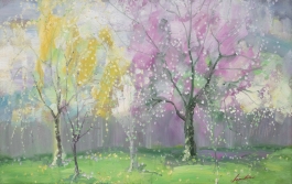 07.23 Constantin Daradici (1948-2017) - "Primăvară", ulei pe carton, 45.5x72cm, semnat dreapta jos cu roșu