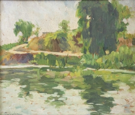 07.28 Apostol Mănciulescu (1887-1962) - "Lacul", ulei pe carton, 35.5x41cm, semnat stânga jos cu verde