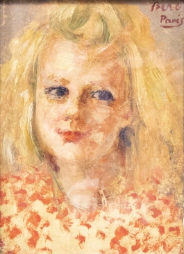 07.39 Dimitrie Berea (1908-1975) - "Portret de fată", ulei pe carton, 24.5x18cm, semnat dreapta sus cu roșu, localizat Paris
