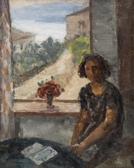 07.44 Samuel Mutzner (1884-1959) - "La fereastră", ulei pe carton, 39.5x31.5cm, semnat stânga jos cu roșu