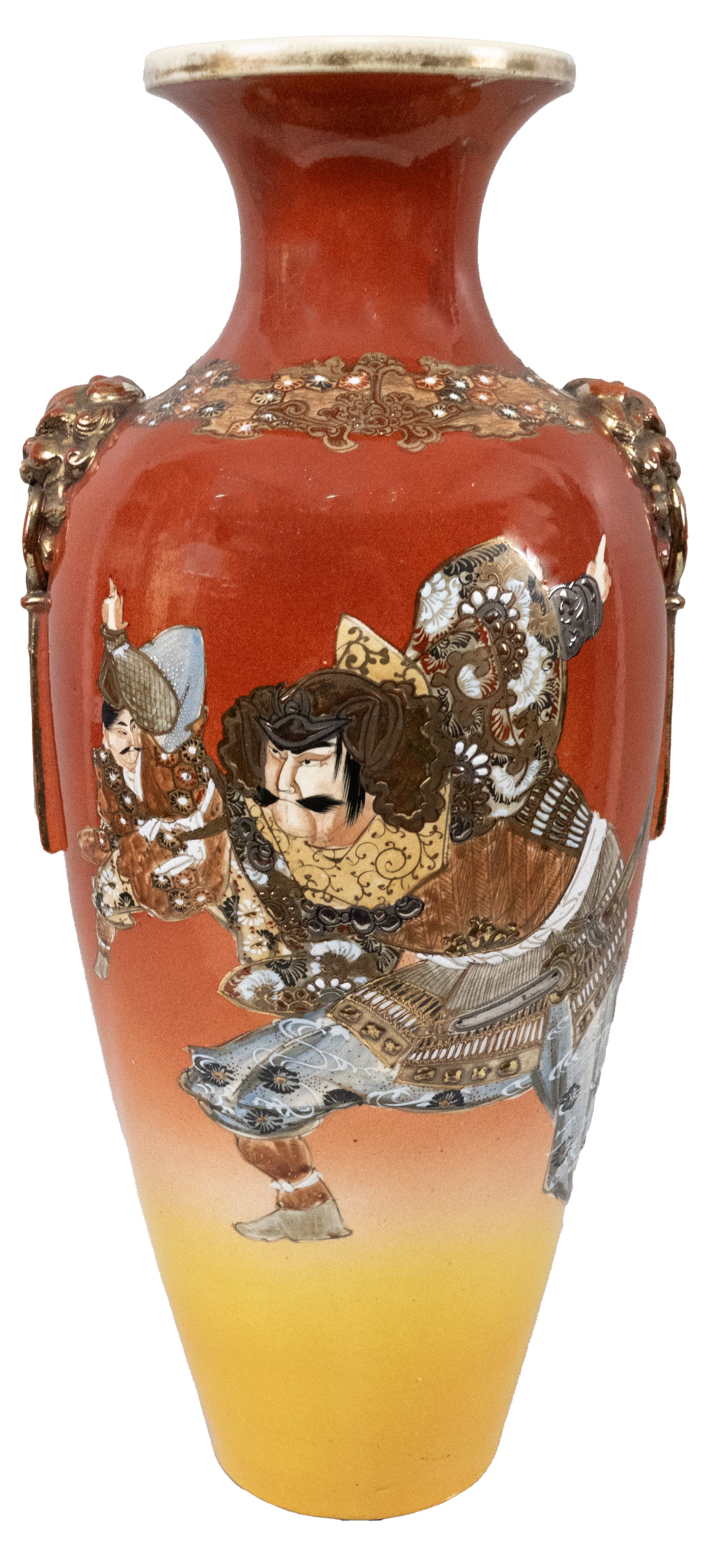 05.16 Vas ornamental, decorat cu personaje, ceramică pictată cu email și aur (tehnnică Moriage) marcat, H 47cm, Japonia, jum.sec.XX