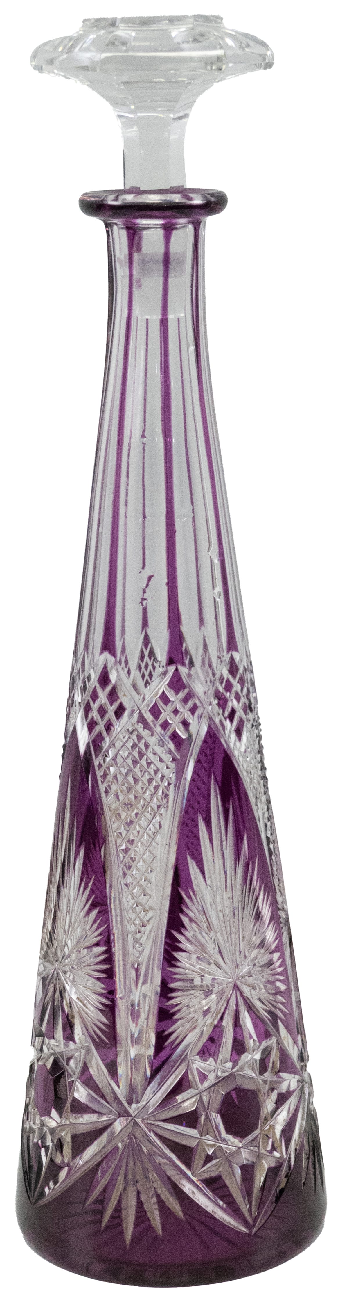 05.15 Flacon cu dop pentru aperitive, cristal în straturi, gravat, H 37.5cm, a II-a jum.sec.XX