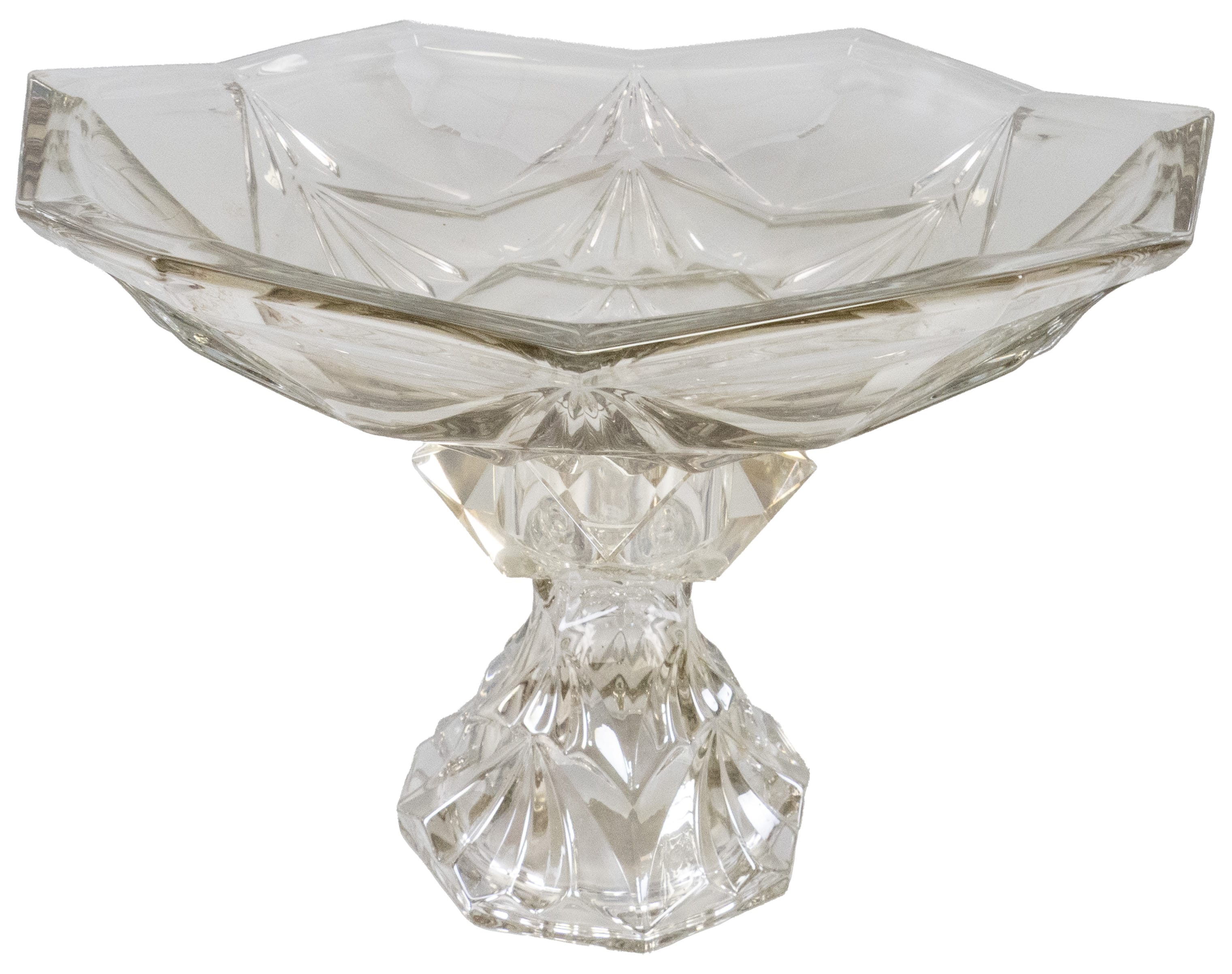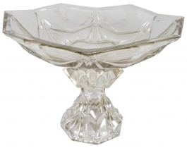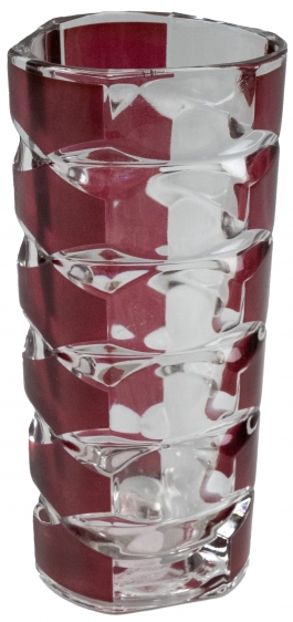 05.14 Vas pentru flori, secțiune triunghiulară, cristal fasetat, parțial colorat, inscripționat, H 17cm, a II-a jum.sec.XX