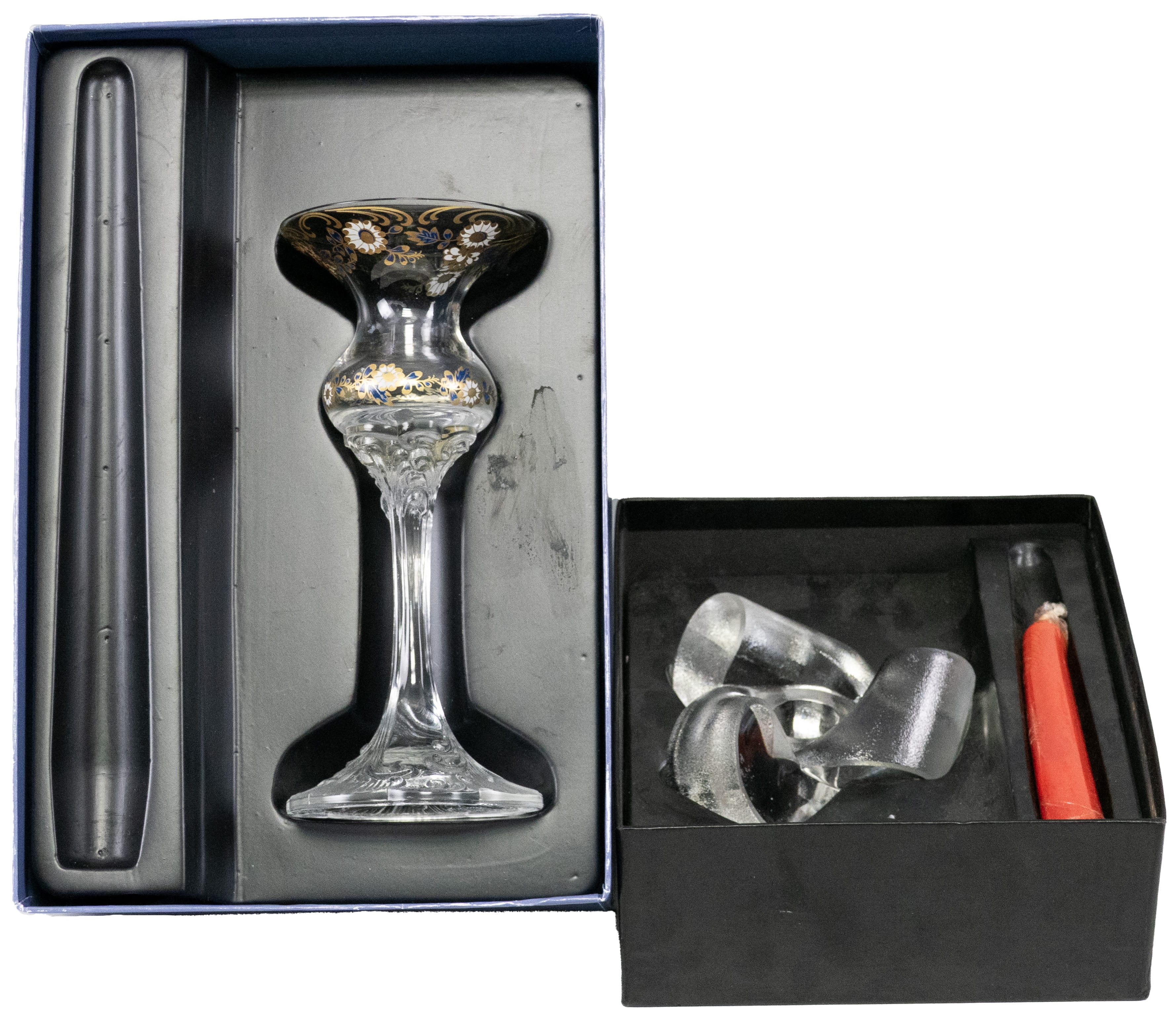 05.22 Două suporturi pentru lumânare, cristal, marcate Rosenthal, H 16/5cm, a II-a jum.sec.XX, ambalaj original