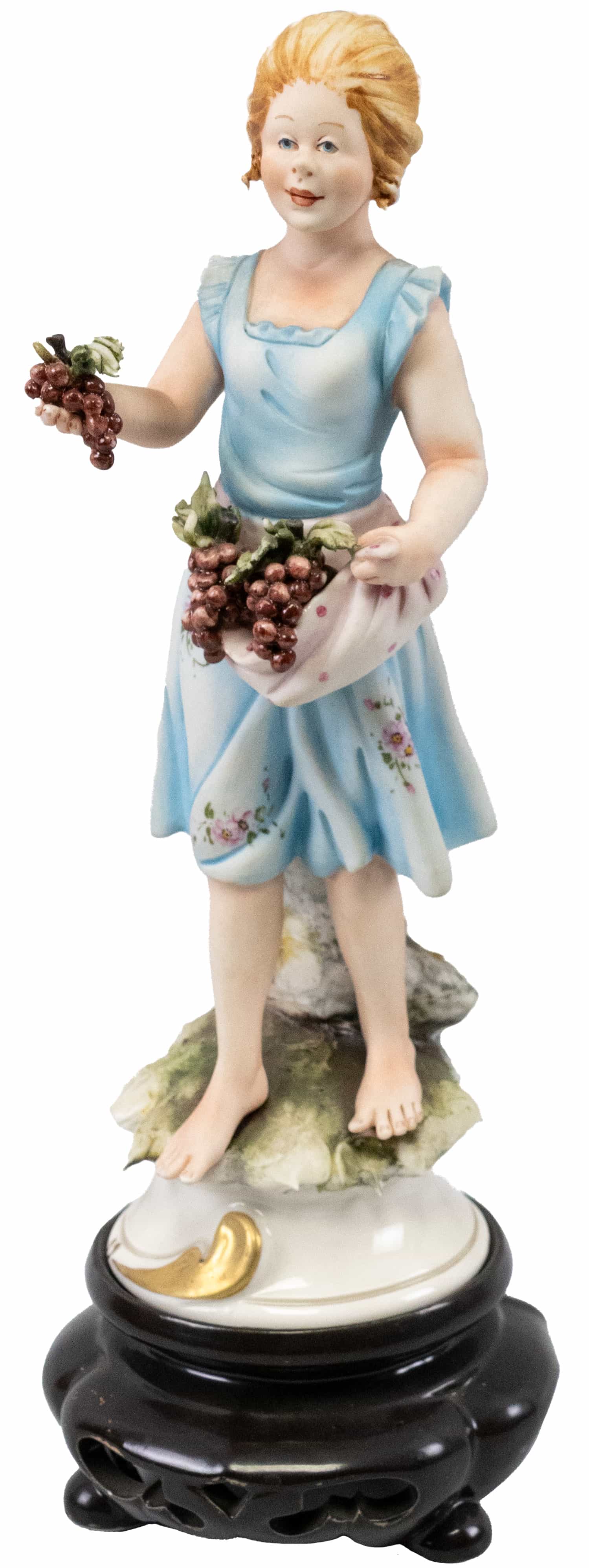 05.01 "Fetiță cu struguri"-piesă ornamentală de birou, marcat Capodimonte, semnat Corti, H 28cm, jum.sec.XX