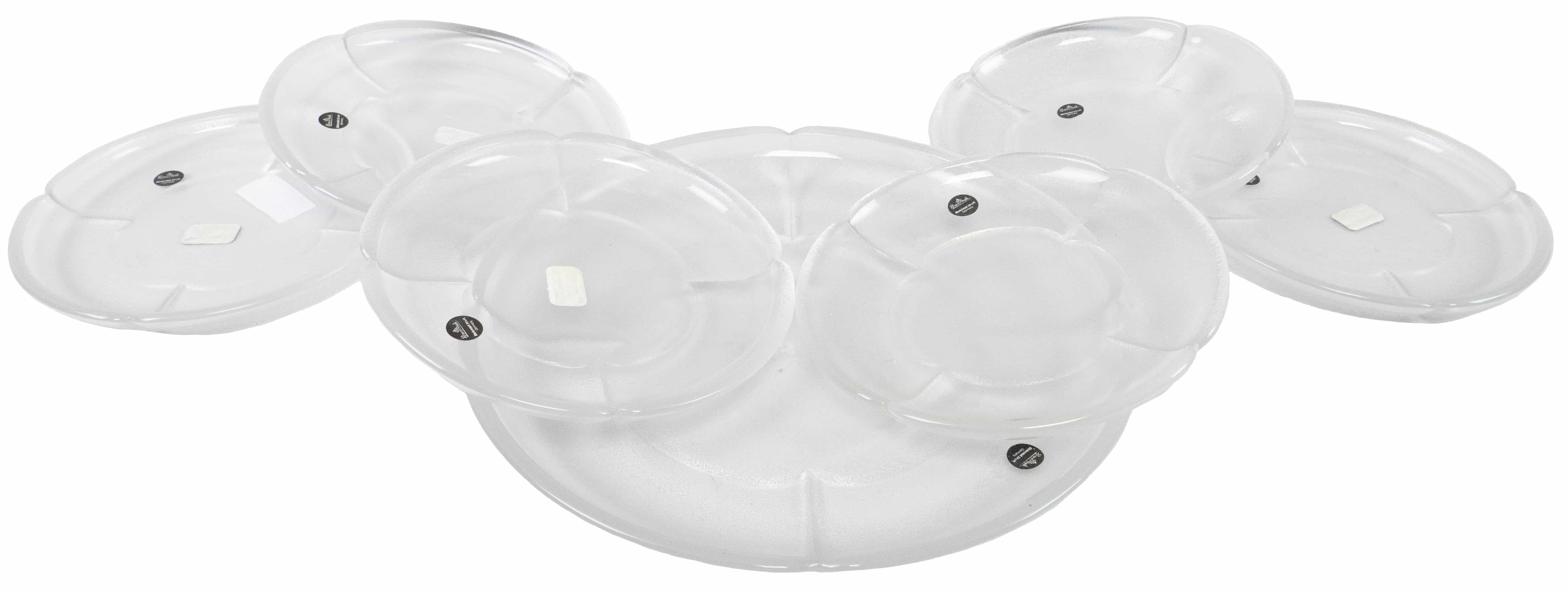 05.09 Un platou cu șase farfurii, bordură lobată, sticlă mătuită, marcate Rosenthal, dia.25,5/16,5cm, a II-a jum.sec.XX