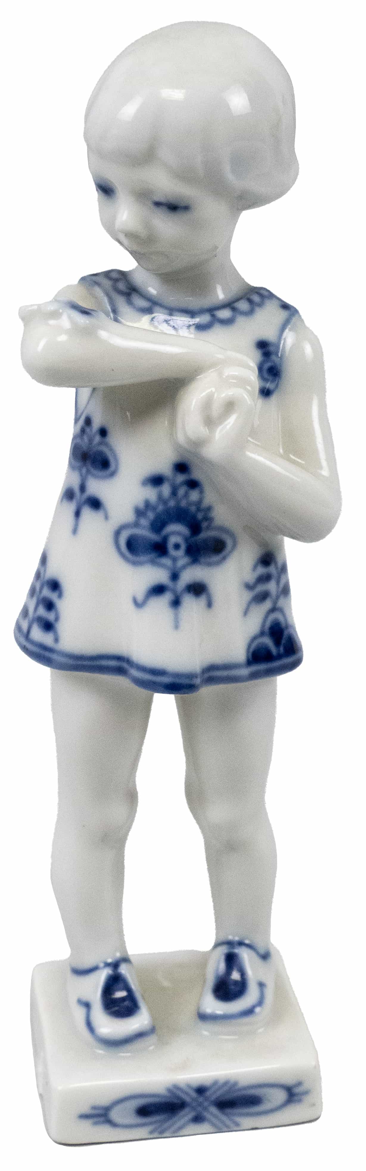 05.19 Fetiță cu fluture-piesă de vitrină, porțelan pictat cu cobalt, marcată Royal Corenhaeen, semnată Hans Henrik, H 15.5cm, a II-a jum.sec.XX