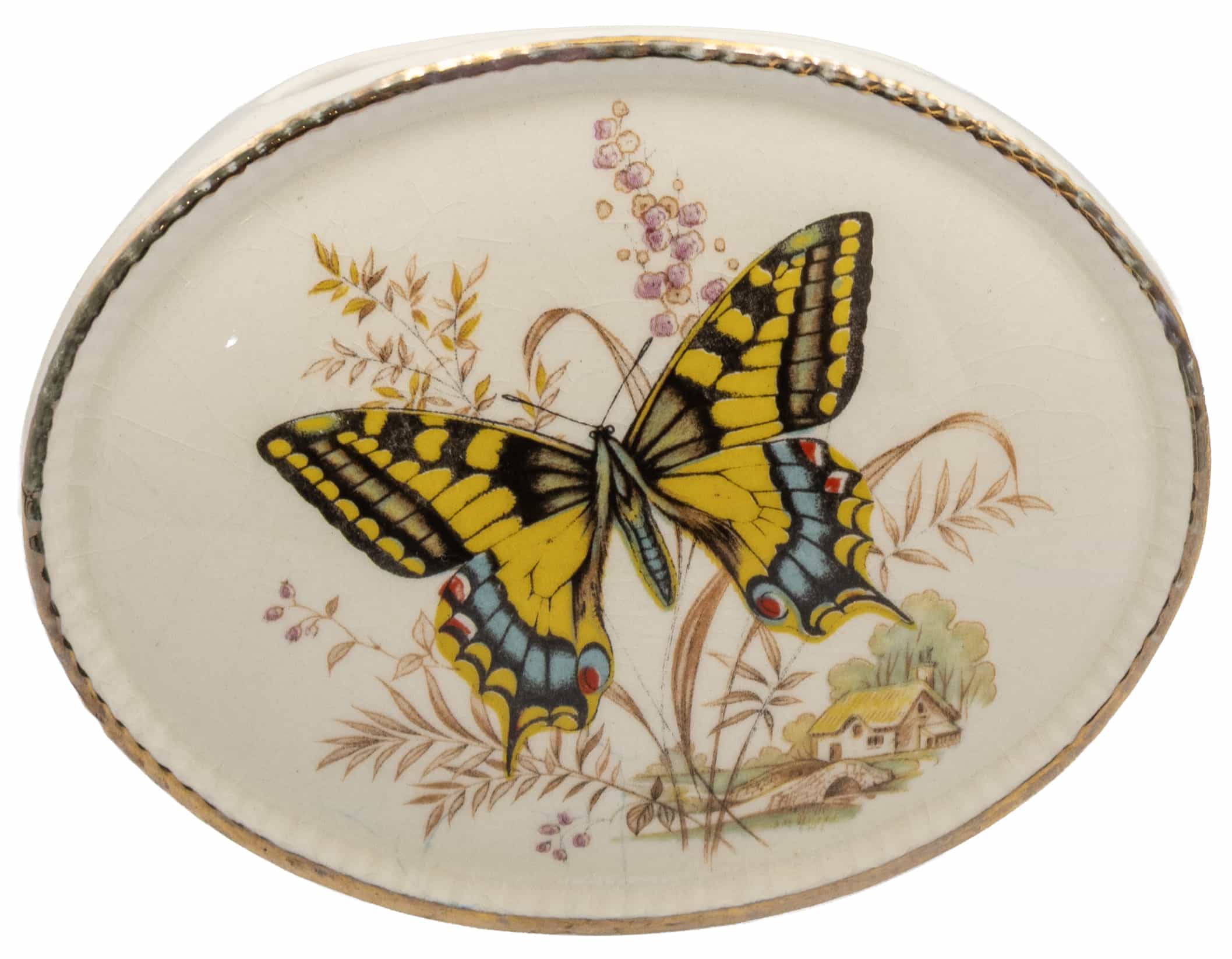 05.09 Solifloră miniaturală, decorată cu fluture, ceramică marcată, H 8cm, Anglia, jum.sec.XX