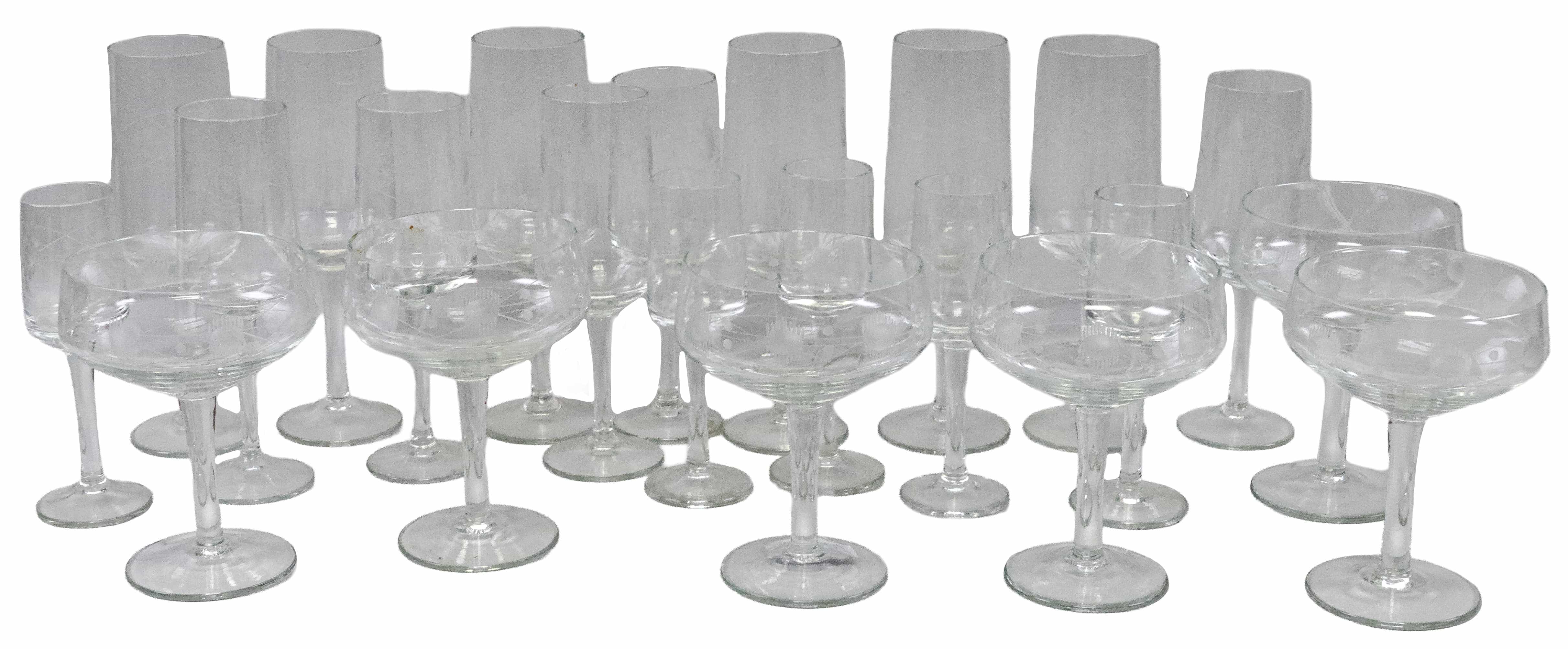 05.10 Pahare pe picior (6+6+5+5), cristal gravat , H 18/13.5cm, jum.sec.XX
