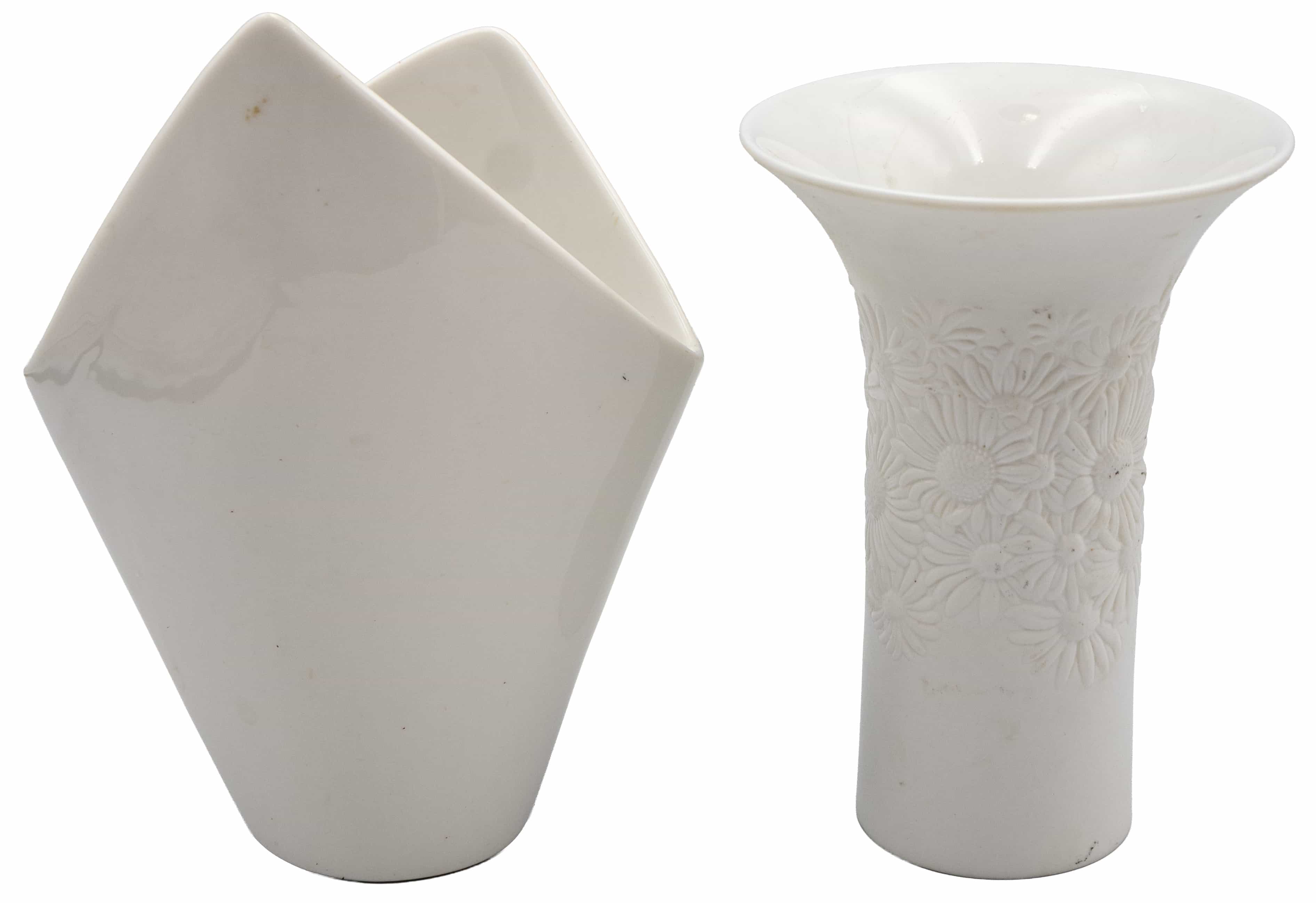 05.12 Două vase pentru flori, porțelan, marcate Rosenthal, H 16/13cm, a II-a jum.sec.XX