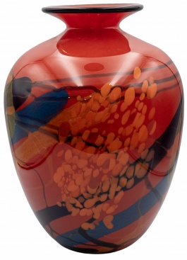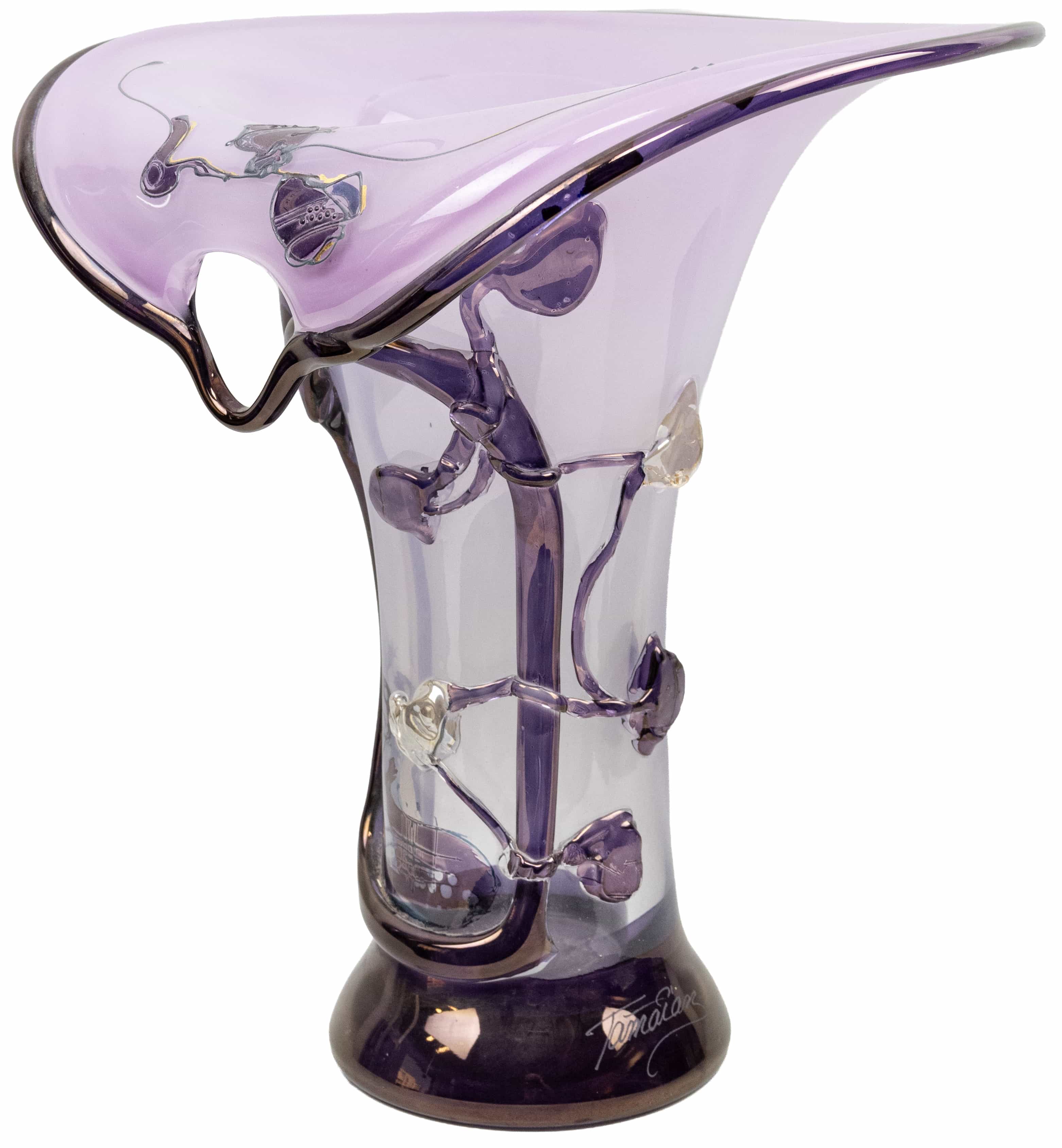 05.11 Vas ornamental, sticlă colorată, semnat Ion Nemțoi, H 34cm, a II-a jum.sec.XX