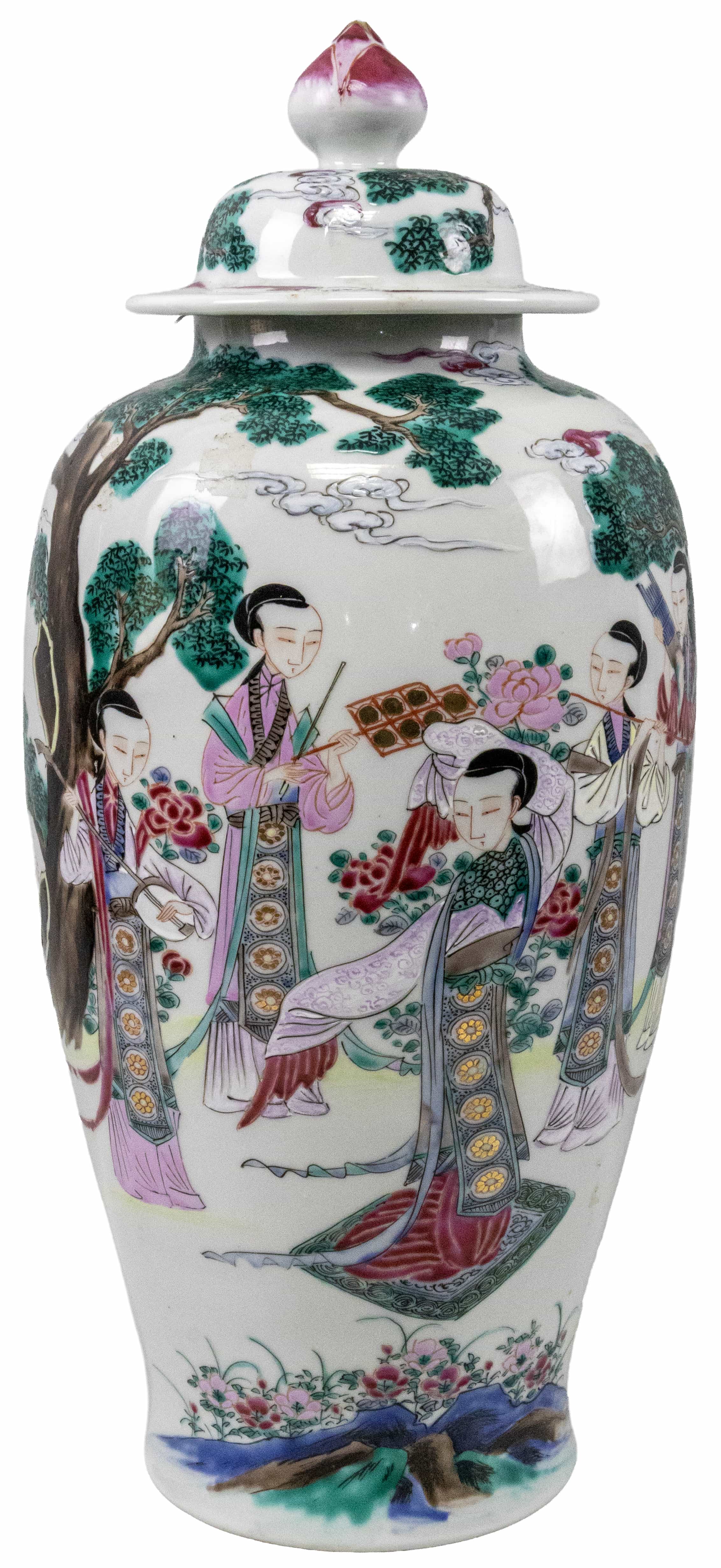 05.20 Vas ornamental cu capac, porțelan pictat cu email (manieră Family Rose), marcat, H 51cm, China, jum.sec.XX