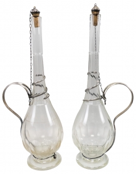 05.01 Pereche de carafe cu dop, metal, cristal, H 43cm
