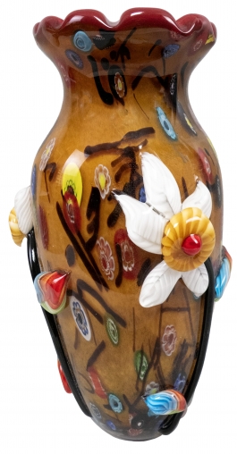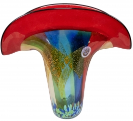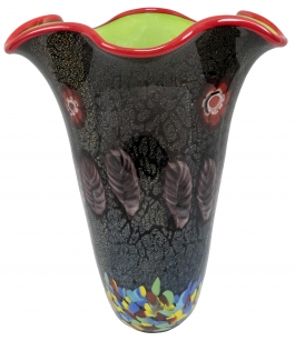 05.02 Vas decorativ, bordură lobată, evazată, Murano, sticlă colorată, H 31.5cm