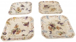 05.11 Patru platouri aperitive, porțelan decorat cu flori, rectangulare, semnate "Sapreguemines", 14.5x14.5cm